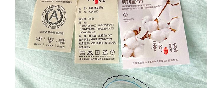 商品名称:豆豆羊家纺 A类新疆棉花夏凉被1.8m*2m 字母