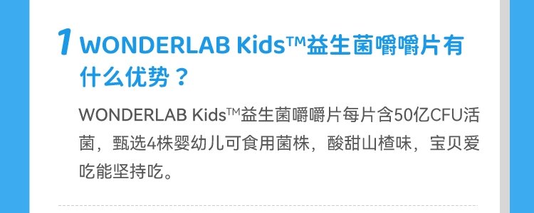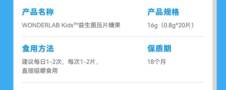 商品名称:万益蓝(WONDERLAB)儿童双歧杆菌压片糖果益生菌咀嚼片 山楂味 20片