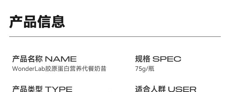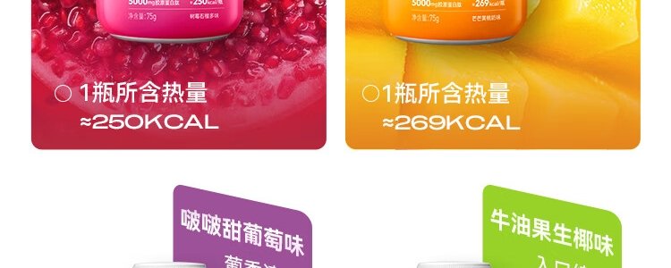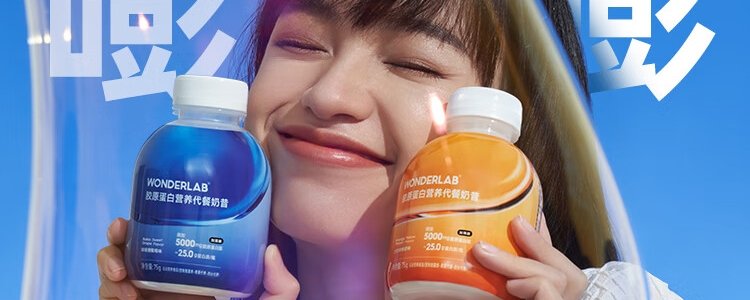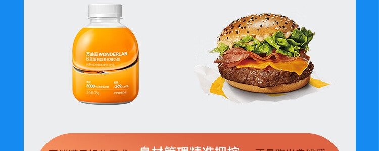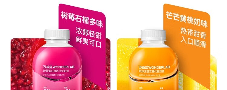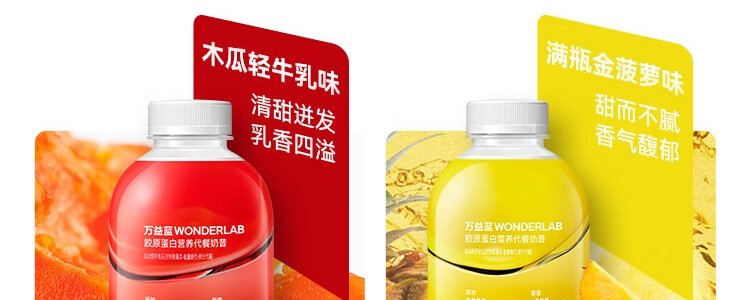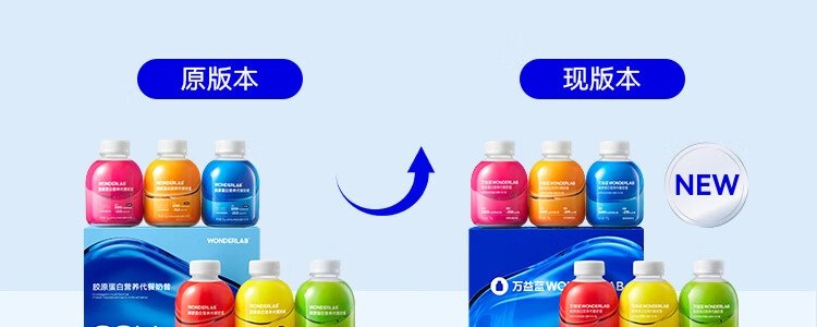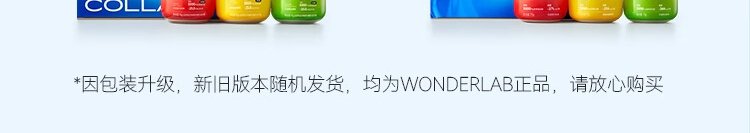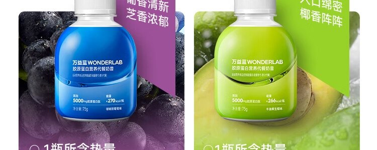 商品名称:万益蓝(WonderLab)胶原蛋白小胖瓶果味代餐奶昔 75g*6瓶 包装随机
