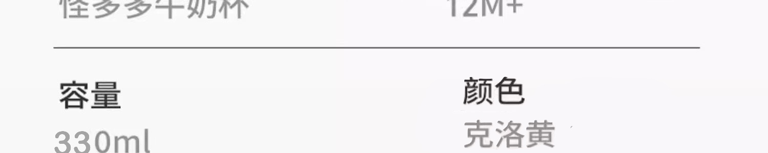 商品名称:皇宠 怪多多牛奶杯 克洛黄 330ml