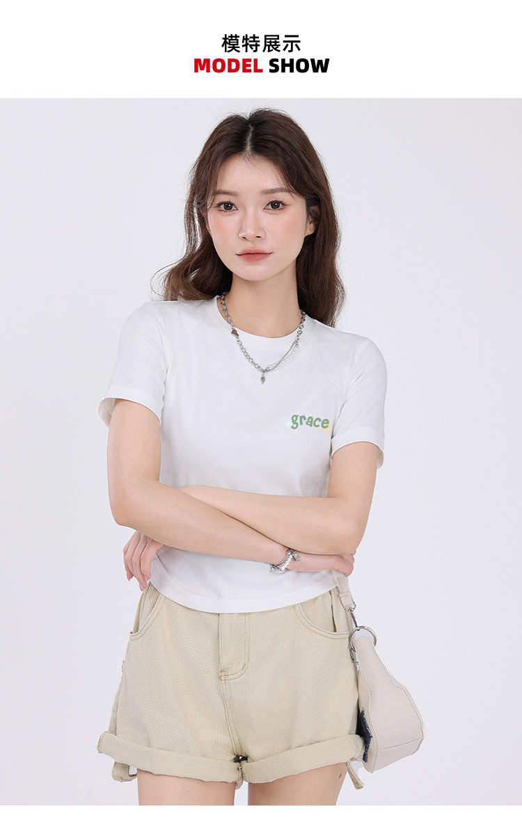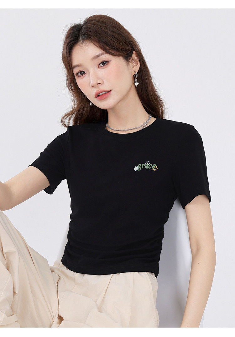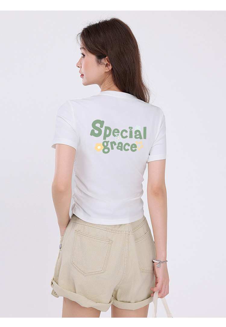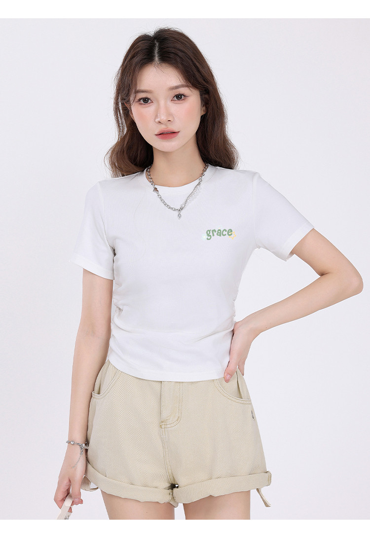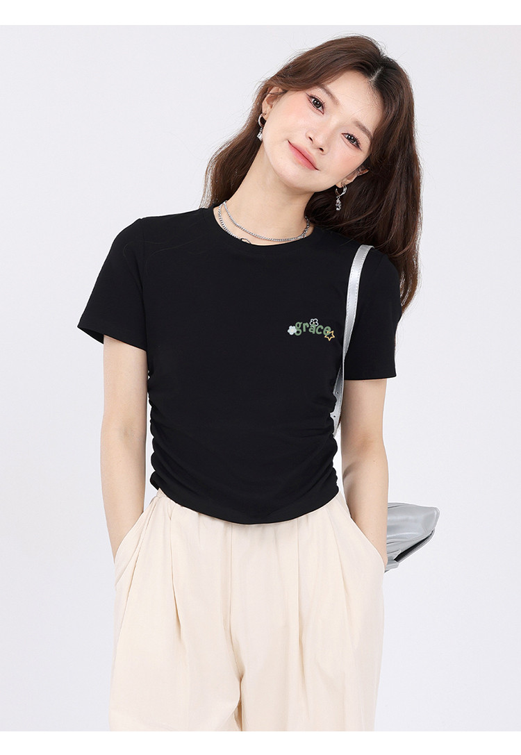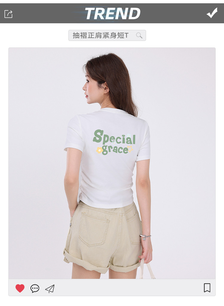 商品名称:【女装正肩】女式短款小个子T恤紧身显瘦夏季小众抽褶设计感短袖 332499