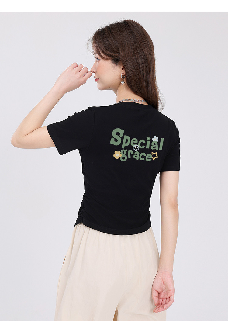 【女装正肩】女式短款小个子T恤紧身显瘦夏季小众抽褶设计感短袖 332499