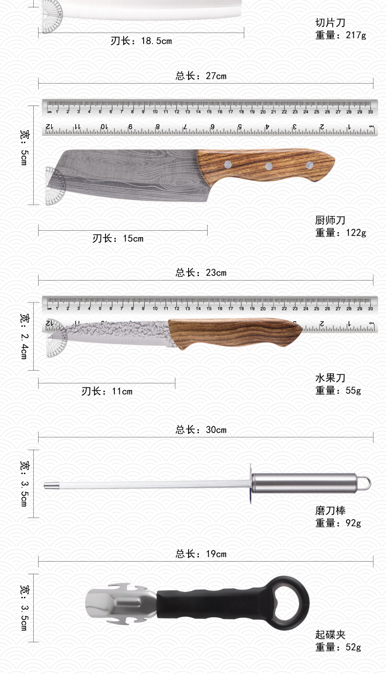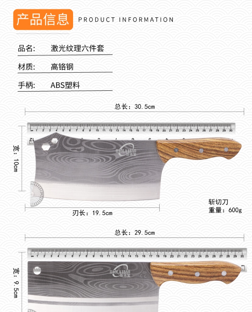 商品名称:好来宝激光纹全钢刀具六件套