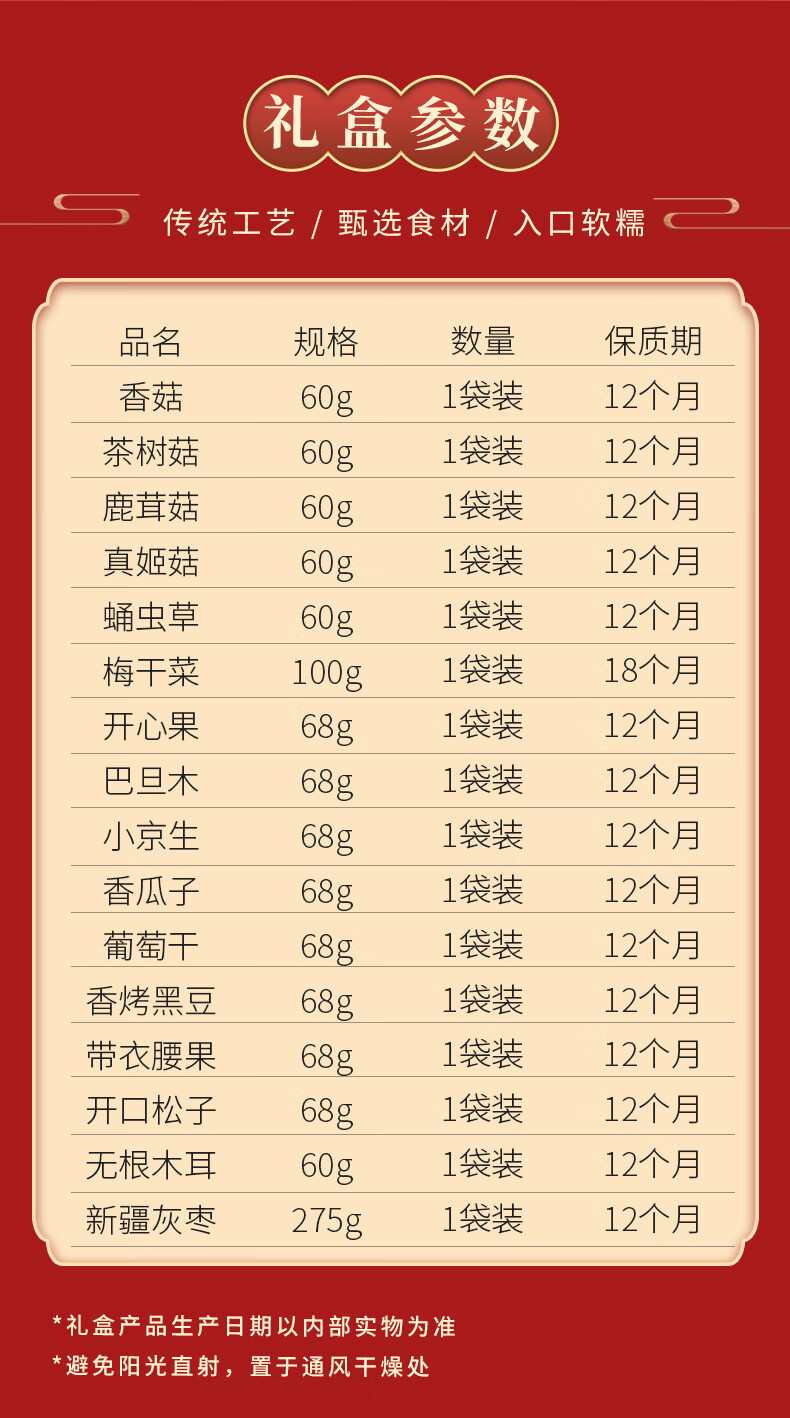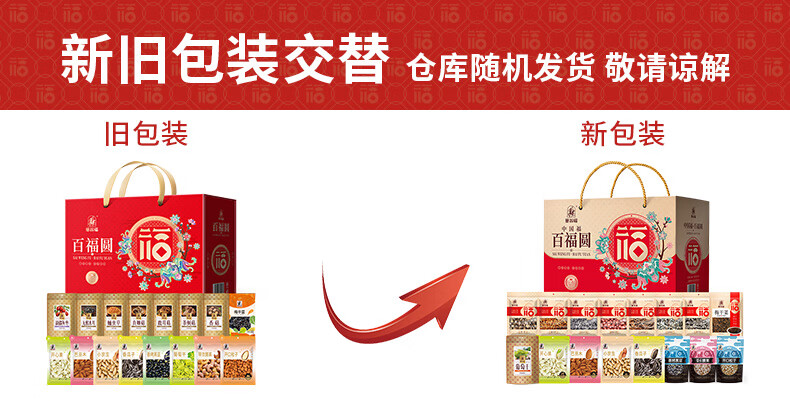 商品名称:塞翁福百福园干货炒货食品礼盒1279g 新老包装随机不接受指定