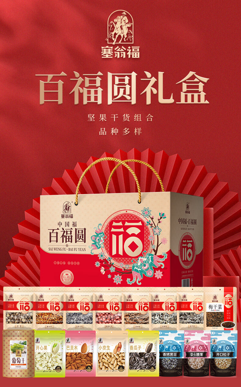 塞翁福百福园干货炒货食品礼盒1279g 新老包装随机不接受指定