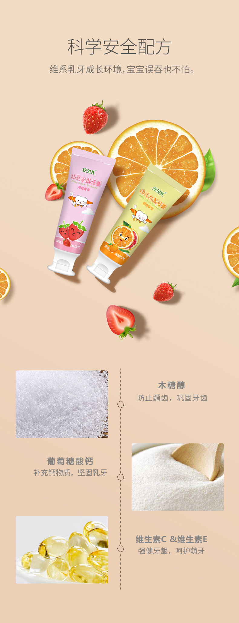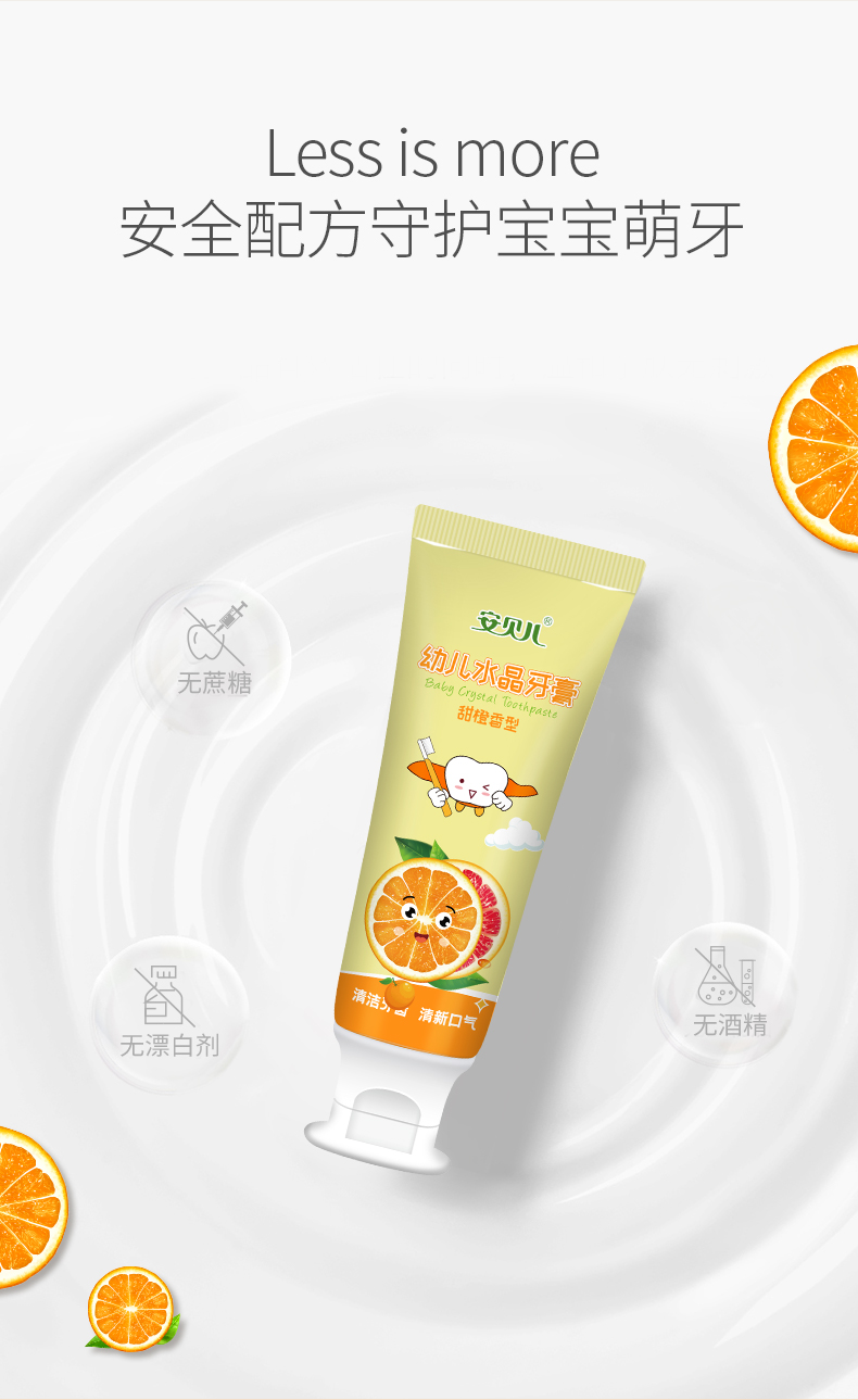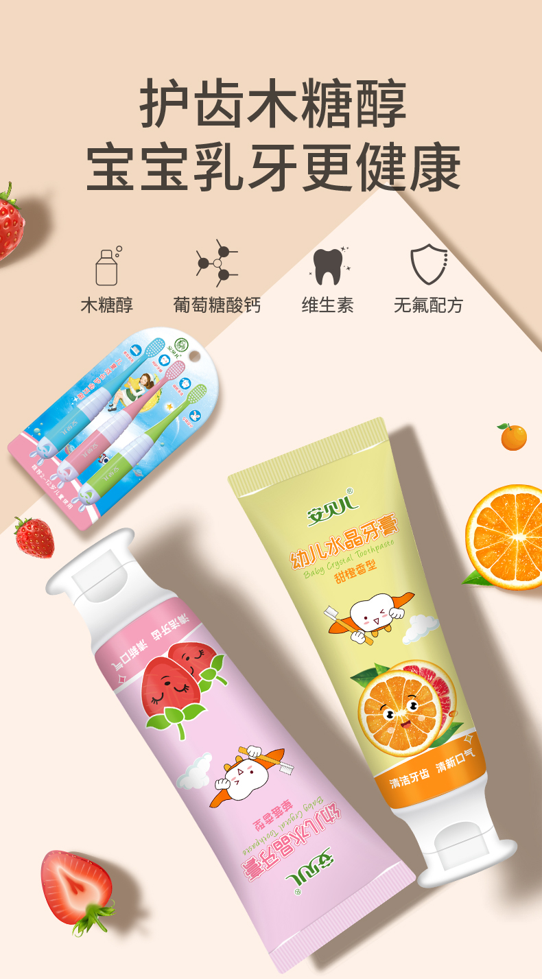 商品名称:安贝儿幼儿水晶牙膏香橙味60g+草莓味60g送3支牙刷