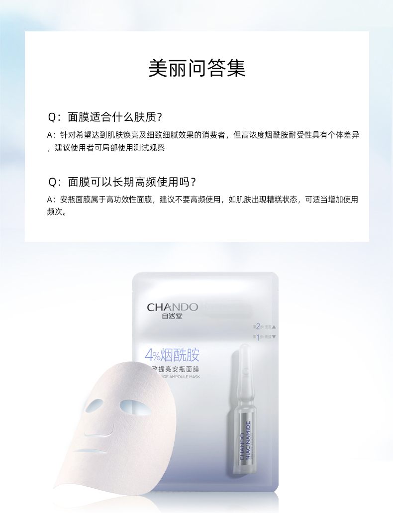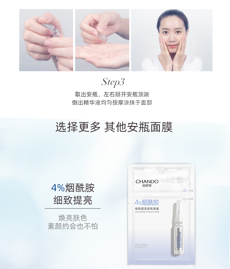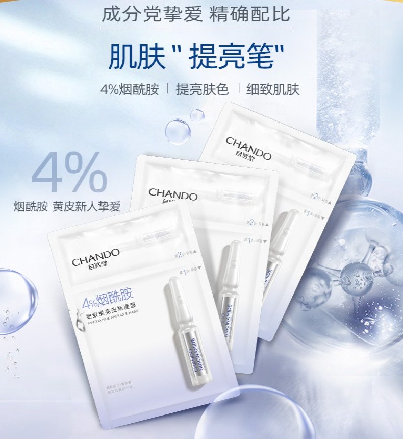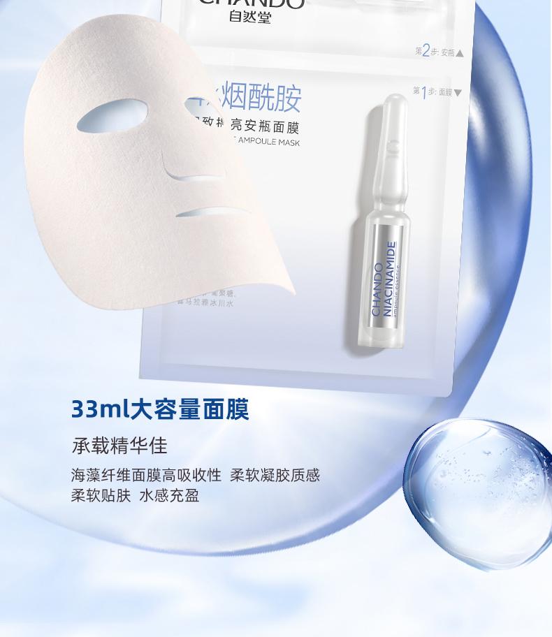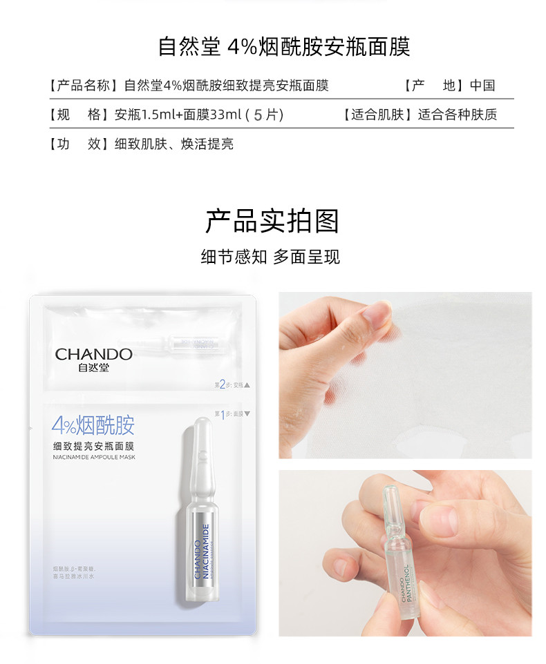 商品名称:CHANDO/自然堂烟酰胺细致提亮安瓶面膜(安瓶1.5ml+面膜33ml)*5片
