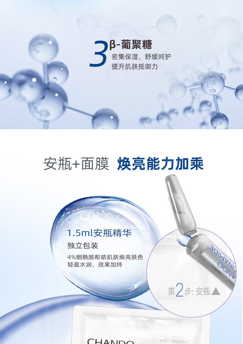 CHANDO/自然堂烟酰胺细致提亮安瓶面膜(安瓶1.5ml+面膜33ml)*5片
