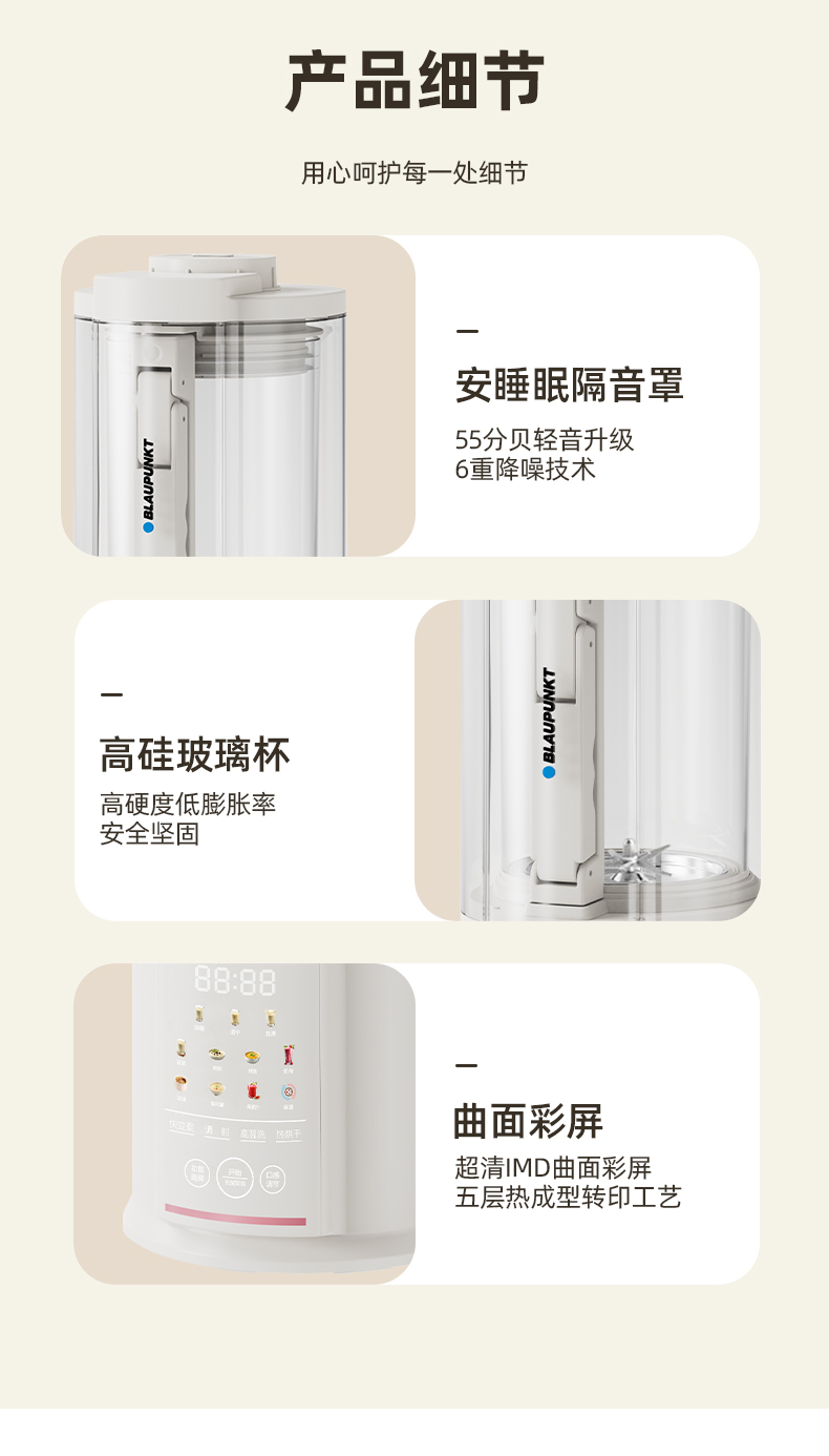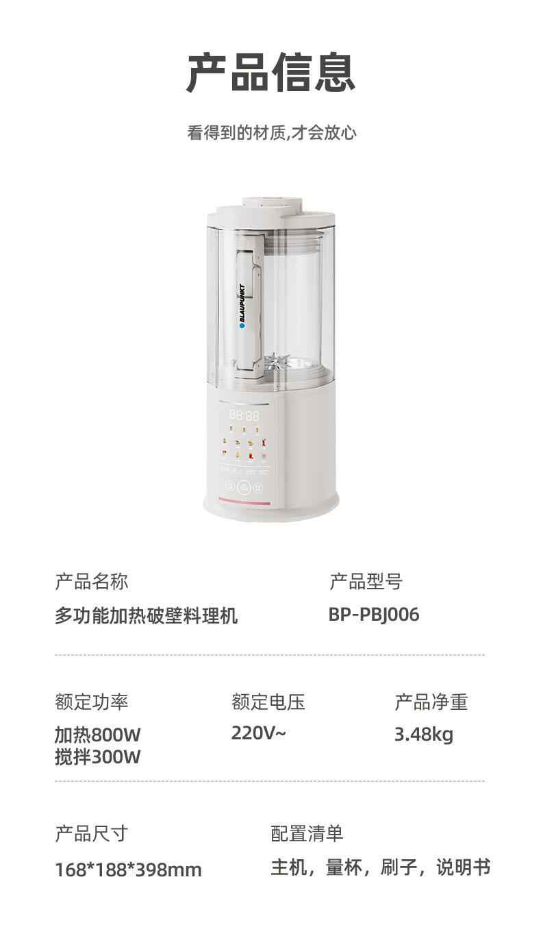 商品名称:【京东/顺丰配送】BLAUPUNKT/德国蓝宝1.5升多功能加热破壁料理机BP-PBJ006