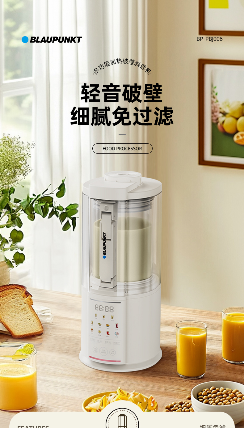 【京东/顺丰配送】BLAUPUNKT/德国蓝宝1.5升多功能加热破壁料理机BP-PBJ006