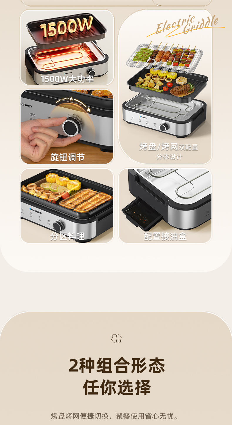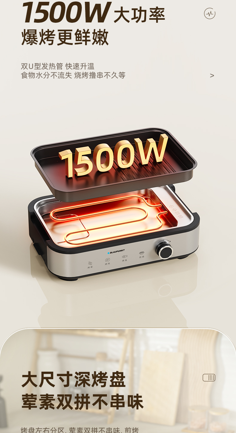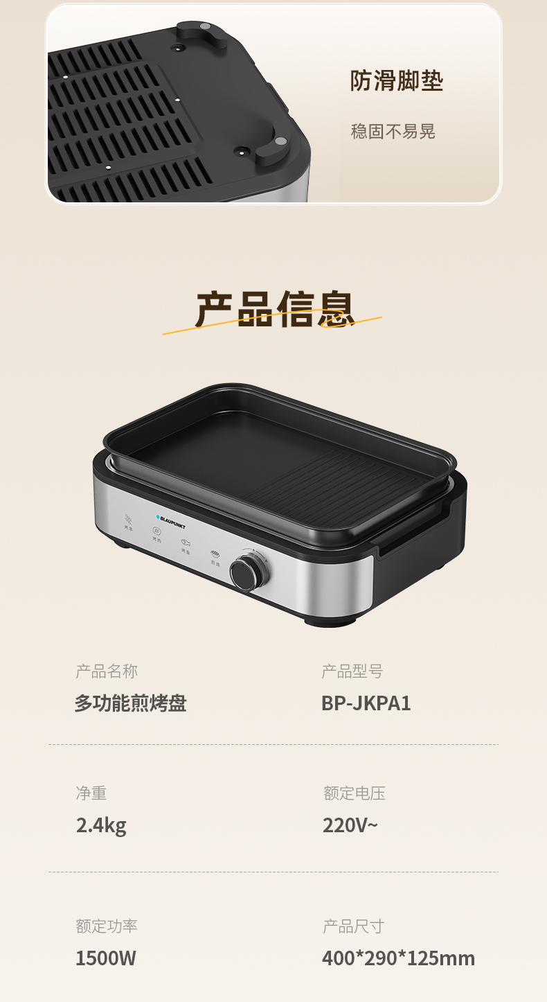 商品名称:【京东/顺丰配送】BLAUPUNKT/德国蓝宝多功能煎烤盘BP-JKPA1
