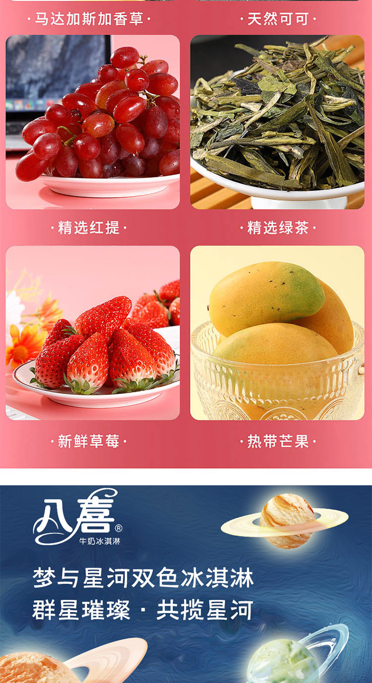 牛奶冰淇淋经典八合一3盒+雪芭2盒+星球90g三合一1盒