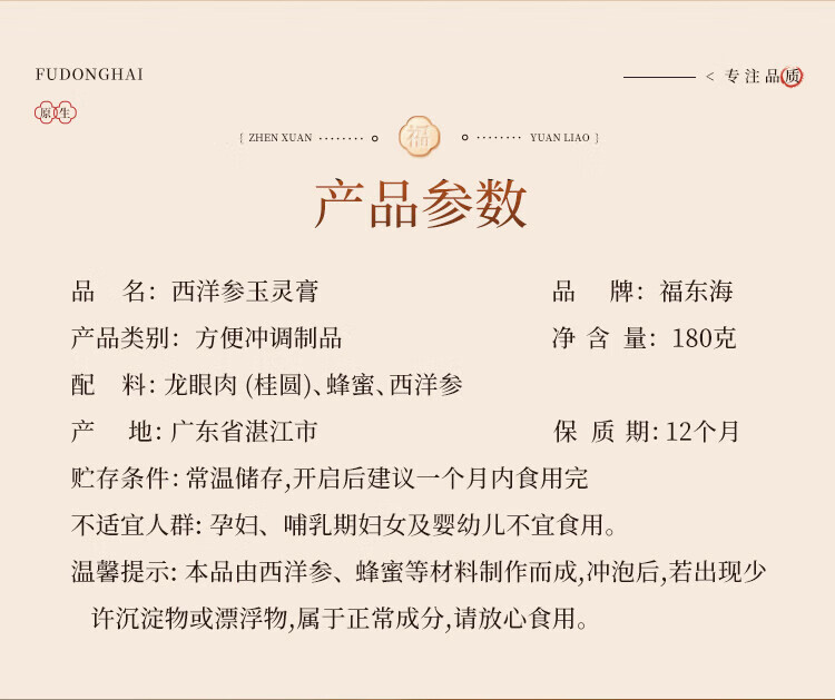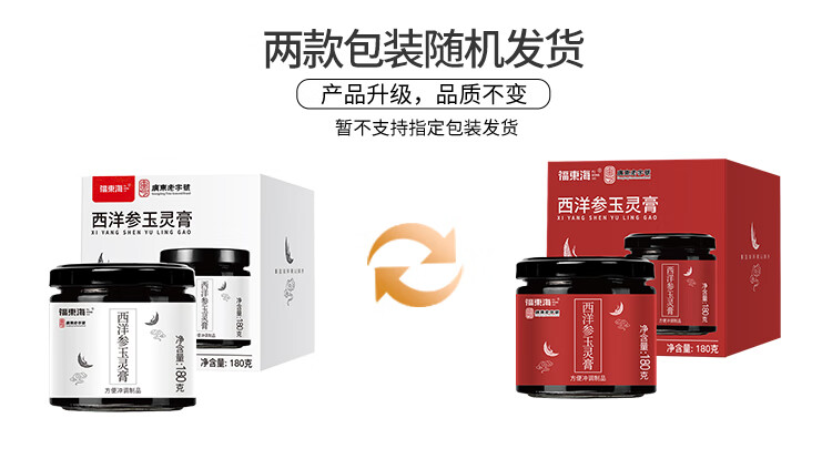 商品名称:福东海西洋参玉灵膏180g 两款包装随机不接受指定