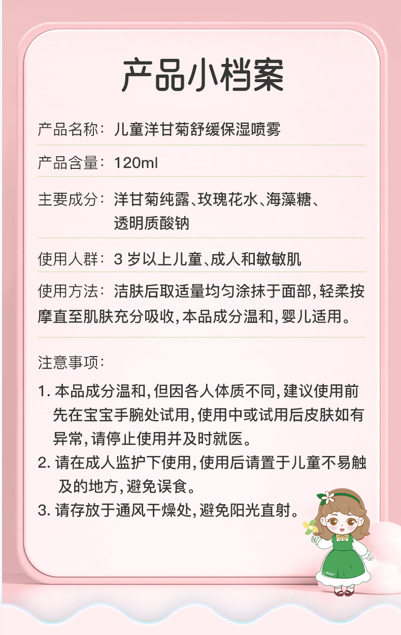 商品名称:安贝儿儿童洋甘菊舒缓保湿喷雾120ml