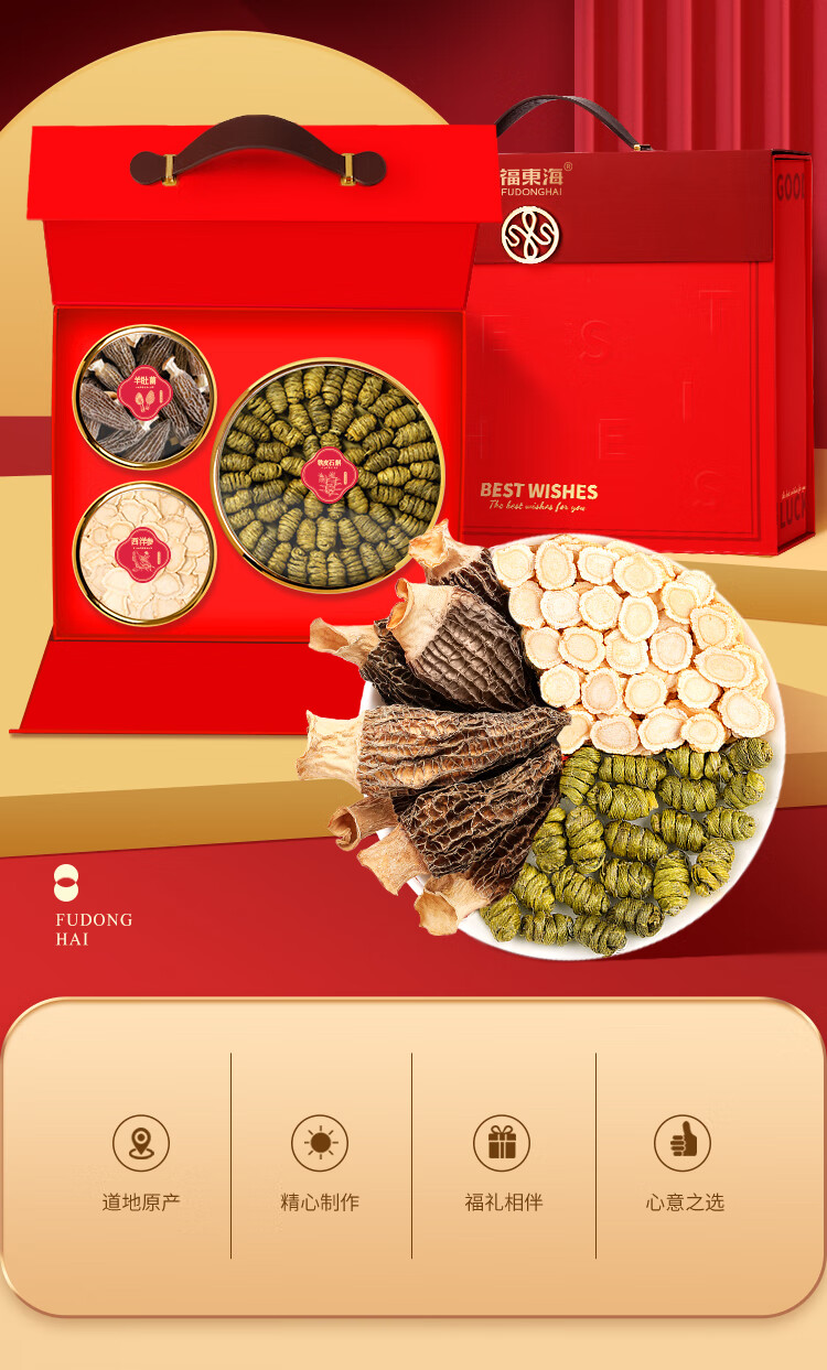 福东海铁皮石斛西洋参羊肚菌三拼礼盒235g