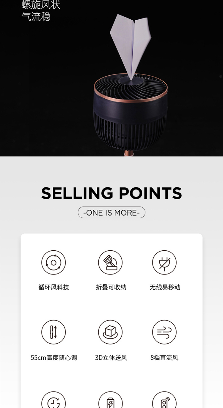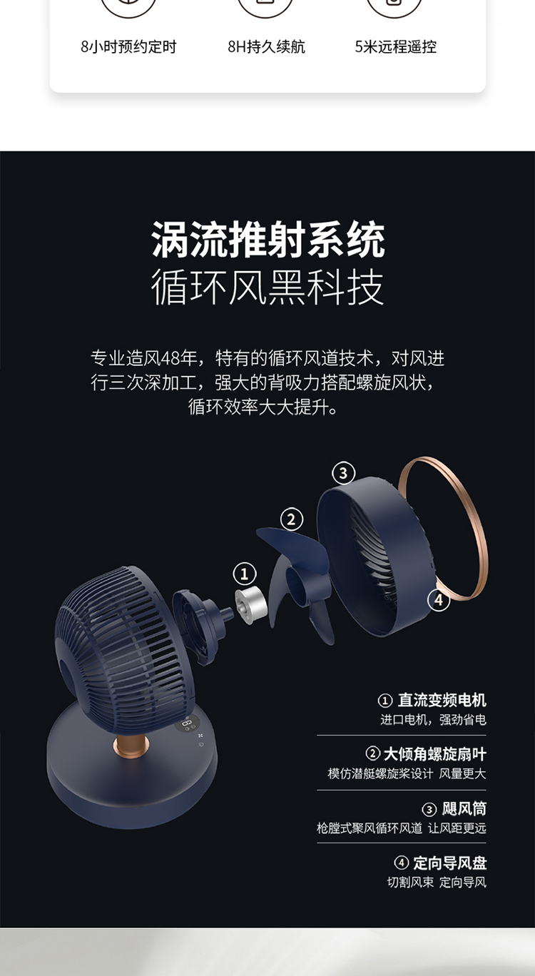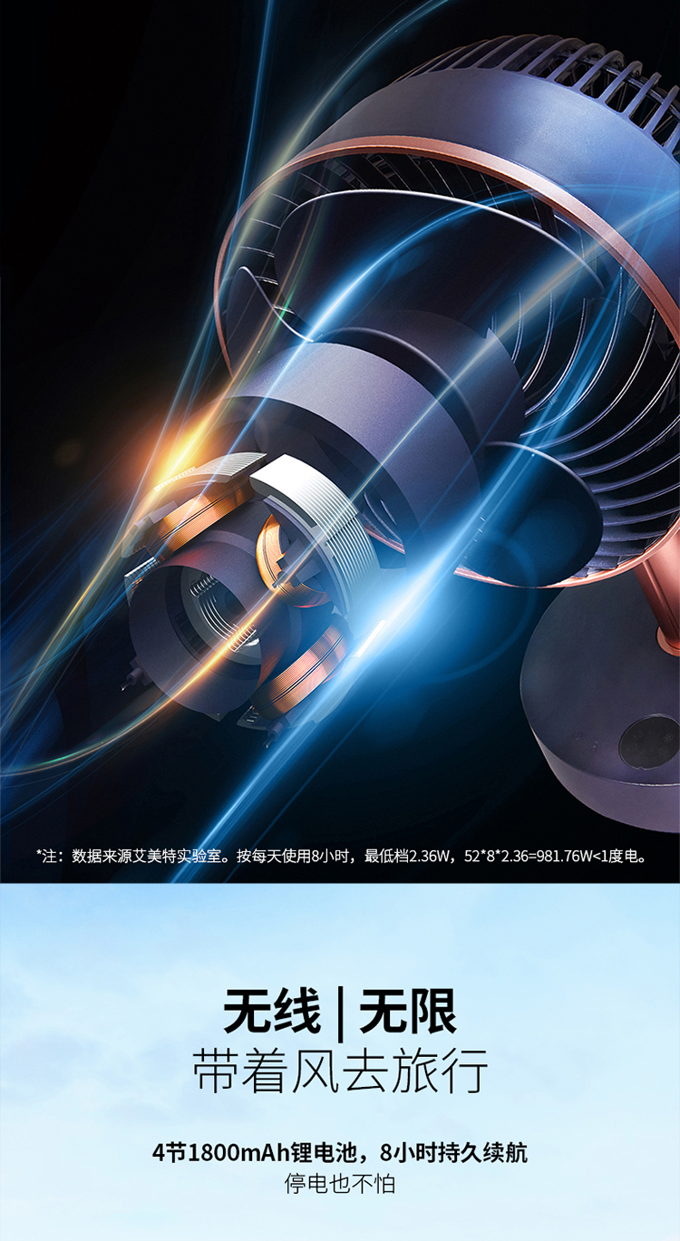 商品名称:Airmate/艾美特蓝色潘多拉无线折叠便携循环风扇CA18-RD49