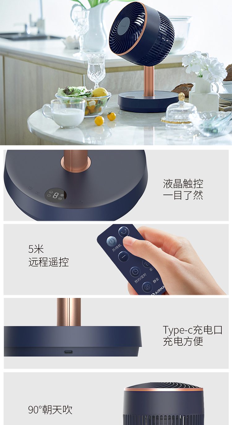Airmate/艾美特蓝色潘多拉无线折叠便携循环风扇CA18-RD49