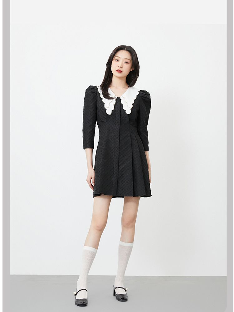 商品名称:【专柜同款】甜美优雅翻领收腰连衣裙女 413585