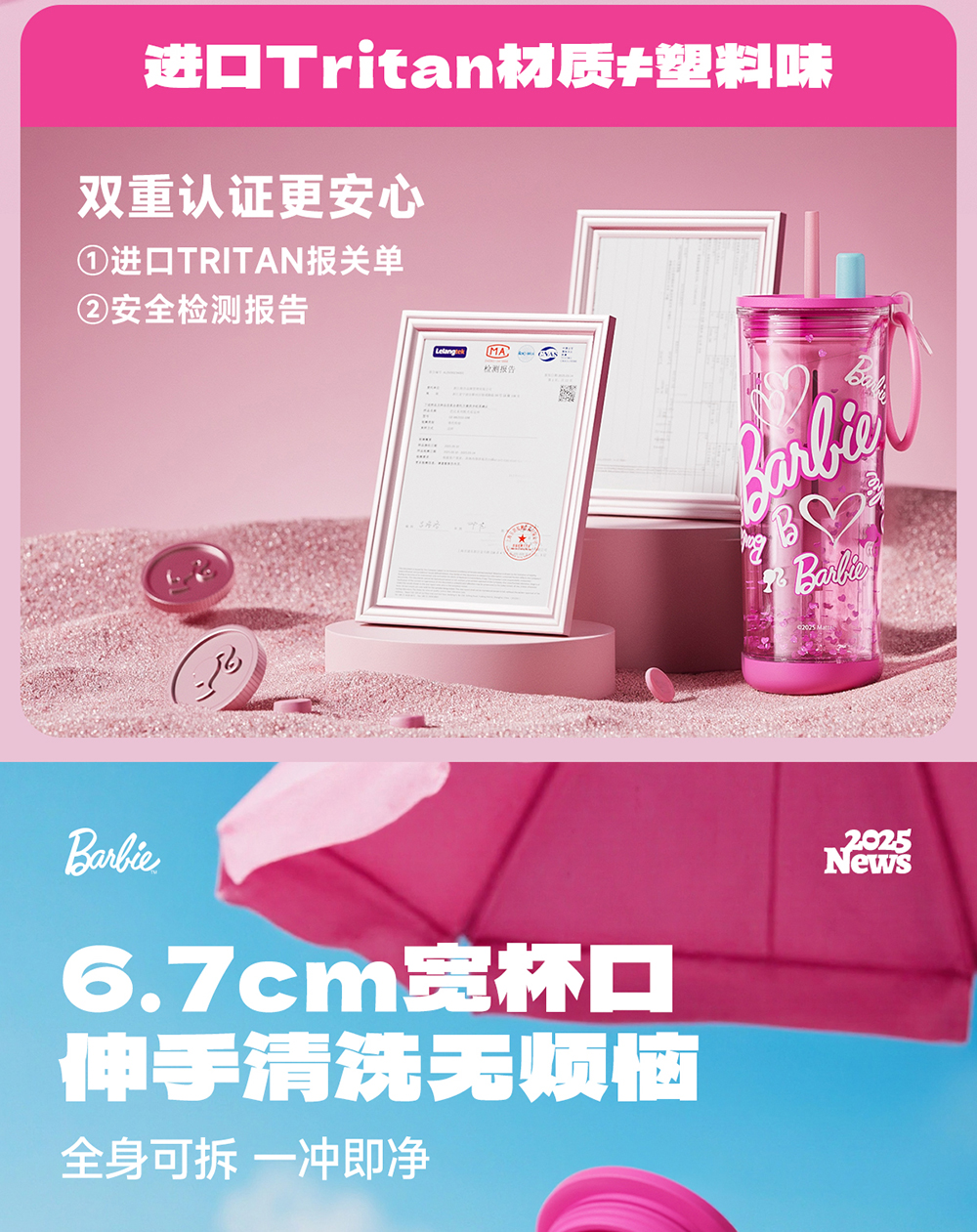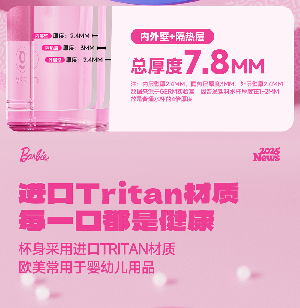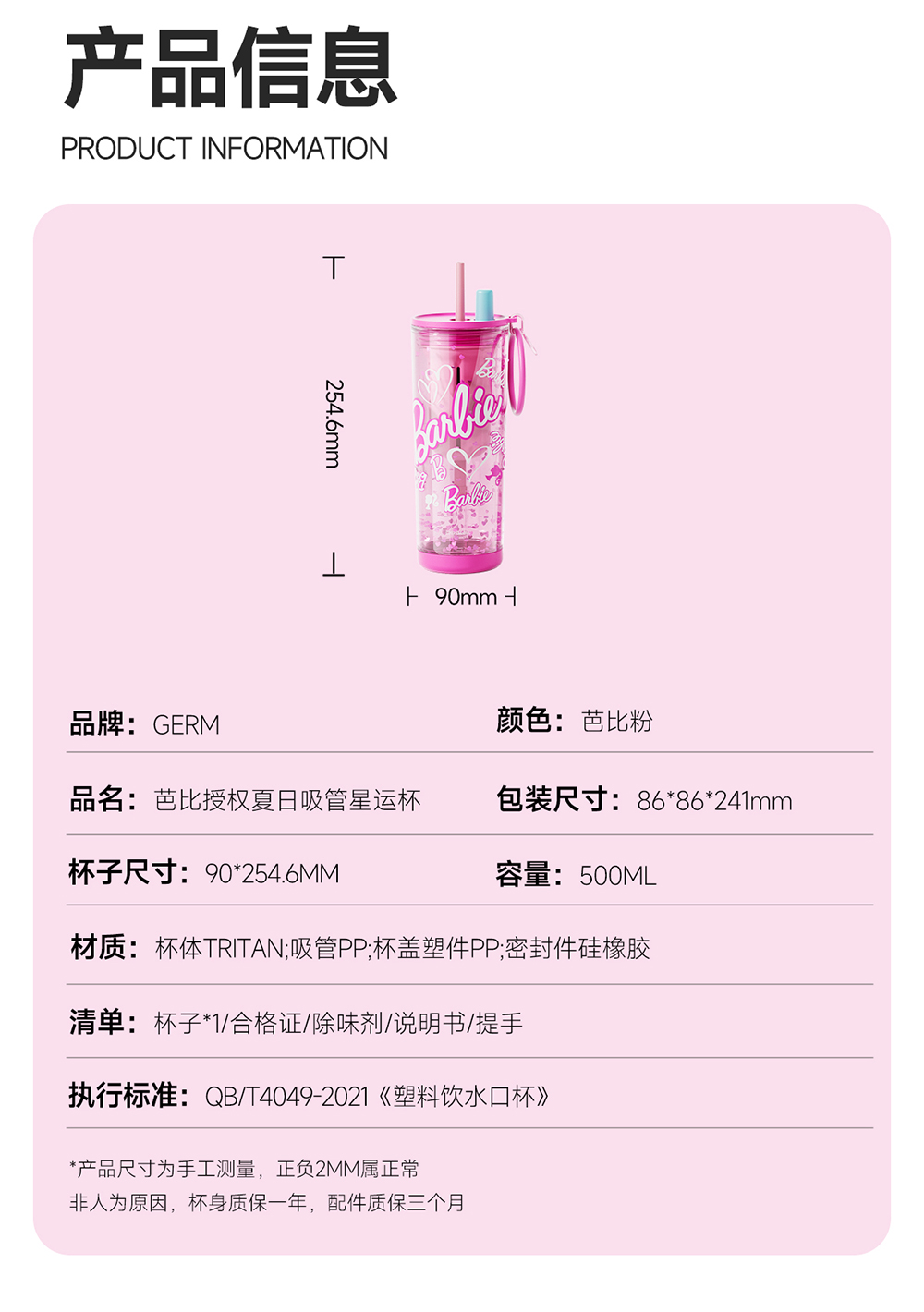 商品名称:GERM/格沵500毫升芭比系列粉光星运夏季水杯