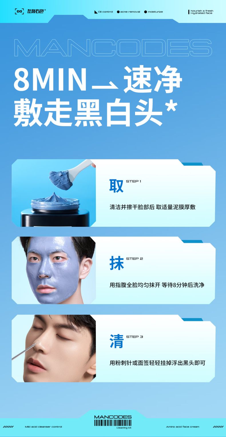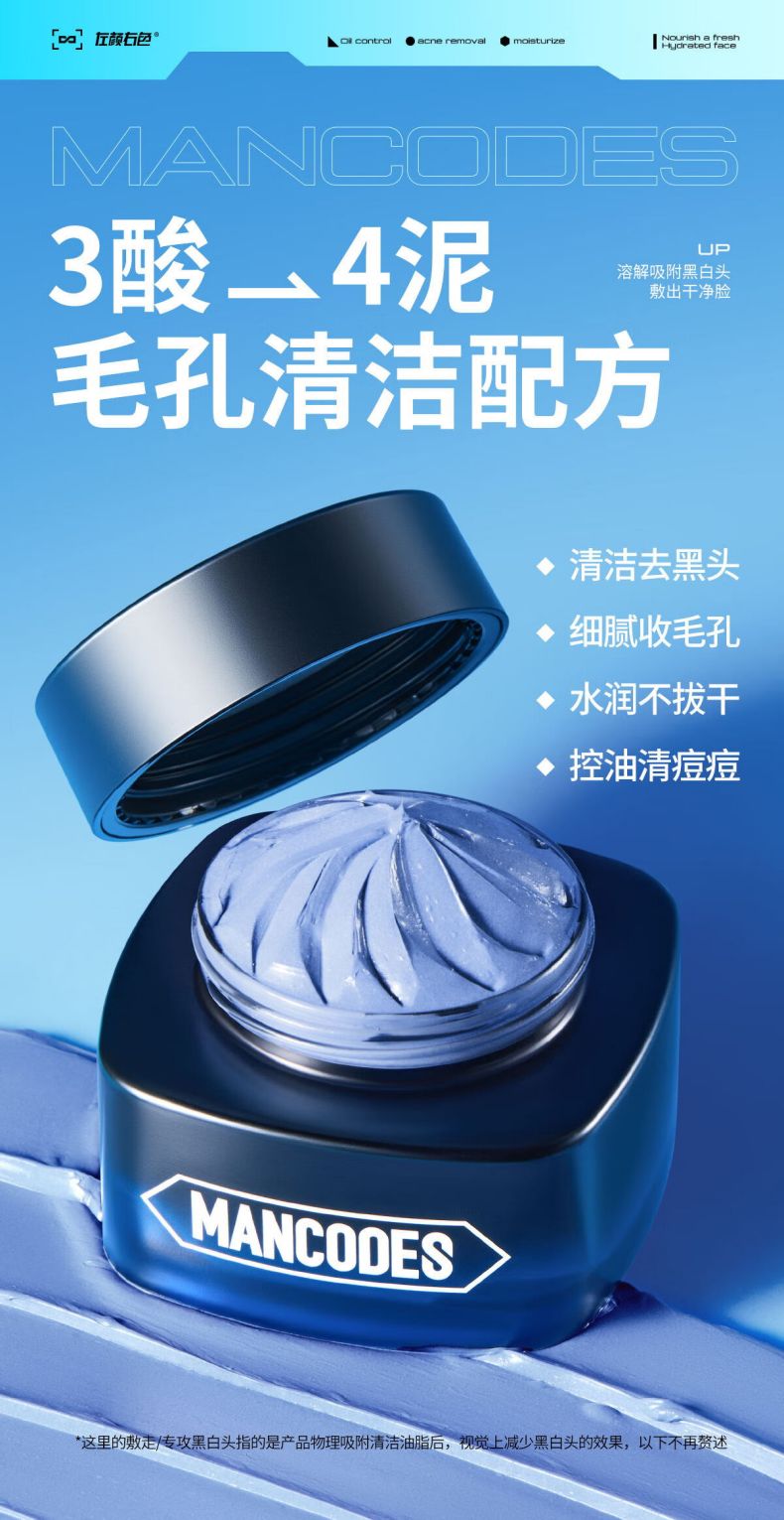 商品名称:MANCODES/左颜右色男士控油净肤蓝泥膜100g
