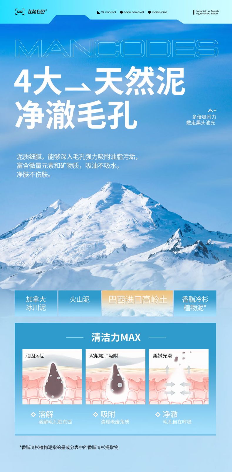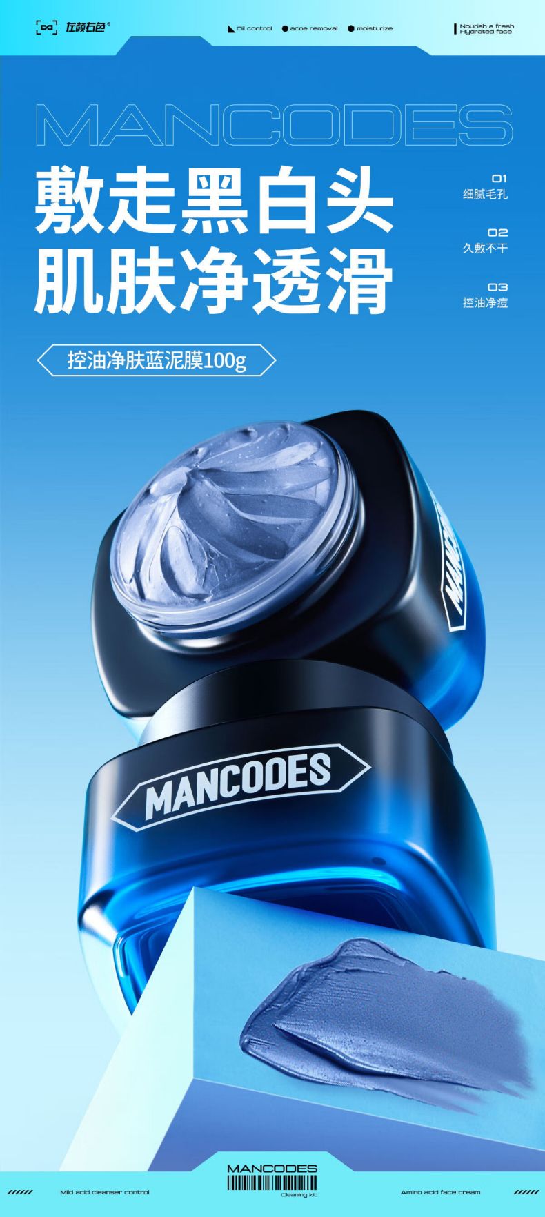 MANCODES/左颜右色男士控油净肤蓝泥膜100g