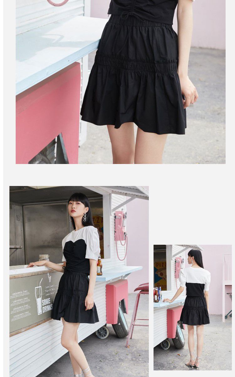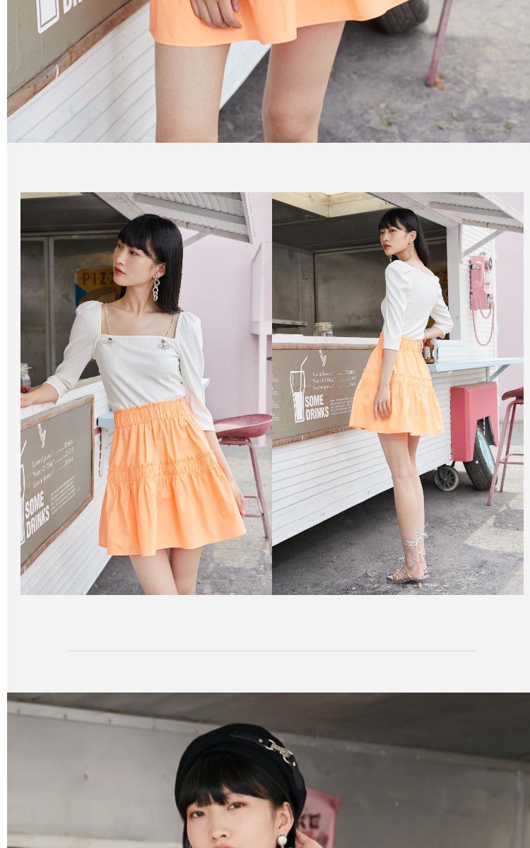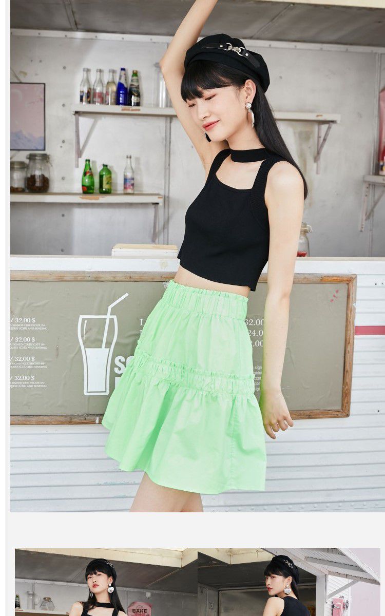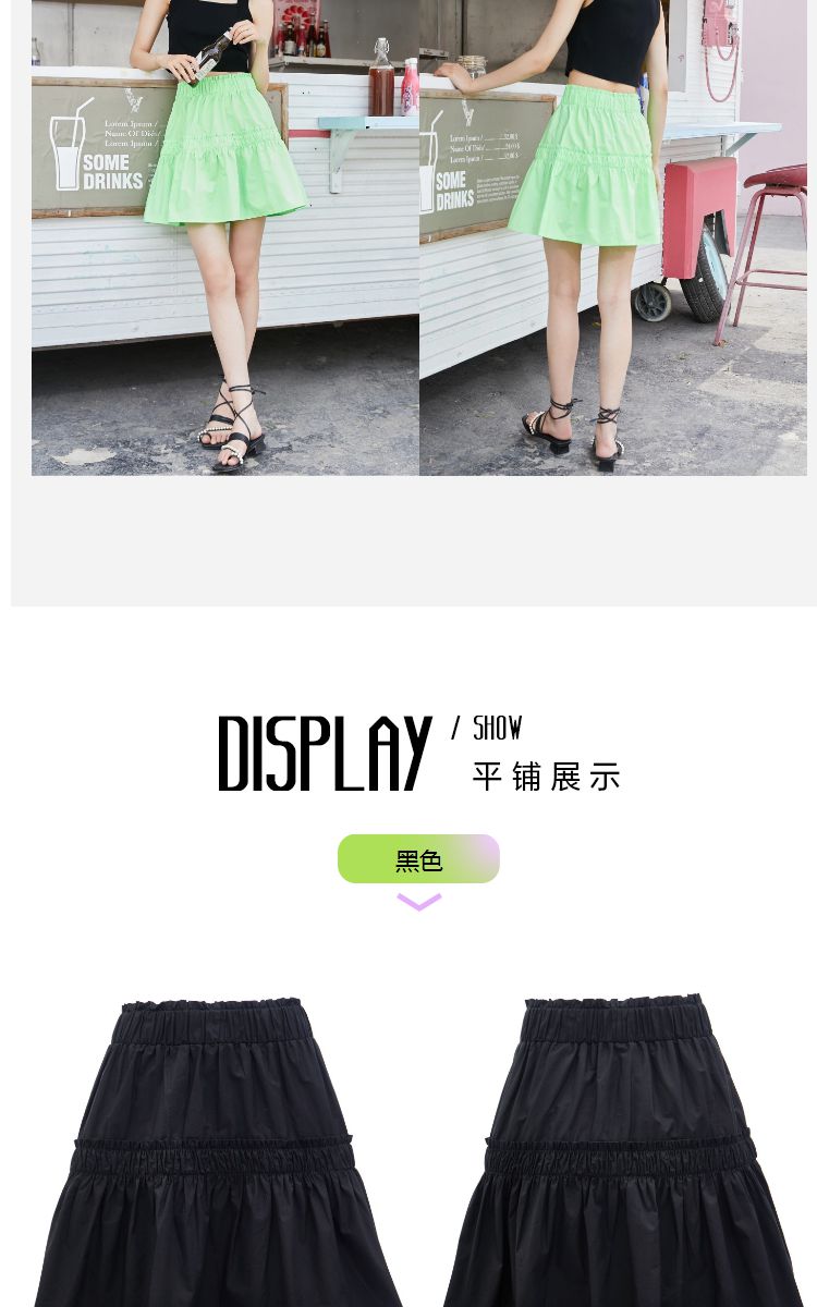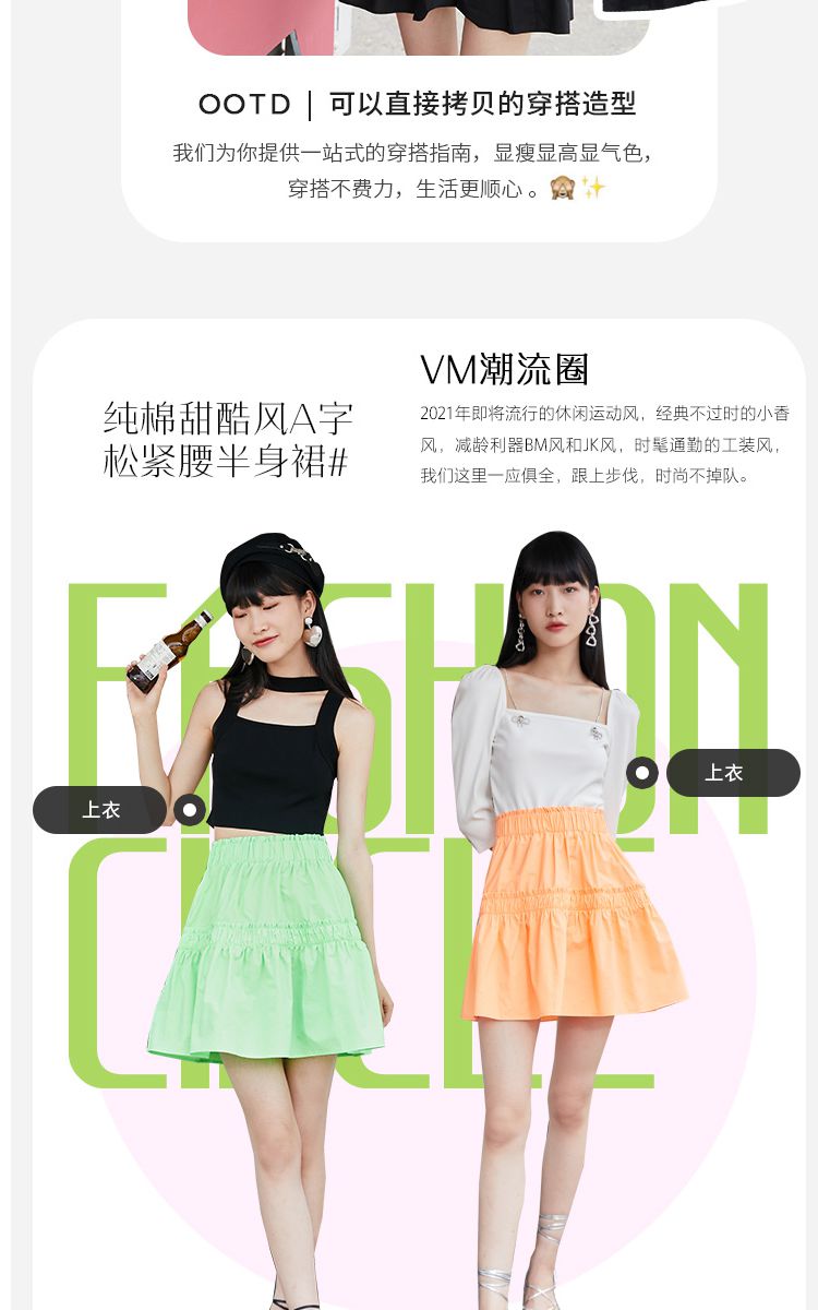 商品名称:【100%棉】春秋纯棉甜酷风A字松紧腰半身裙 105681