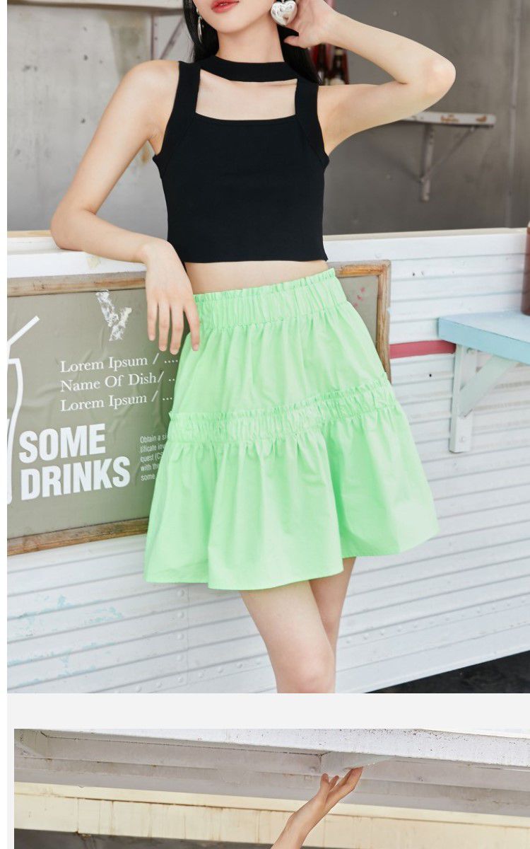【100%棉】春秋纯棉甜酷风A字松紧腰半身裙 105681