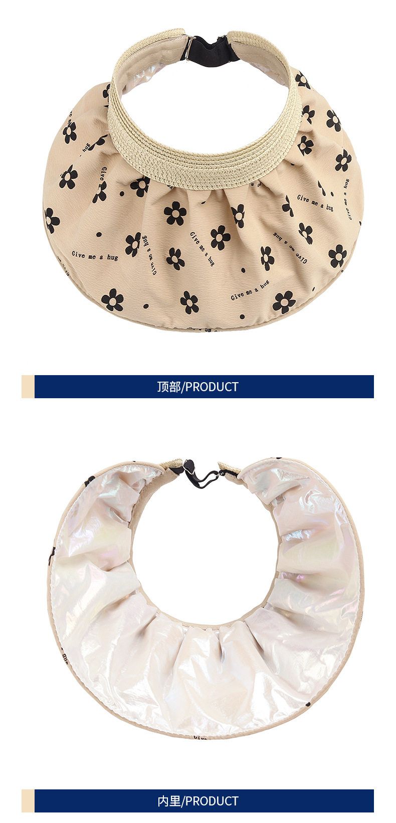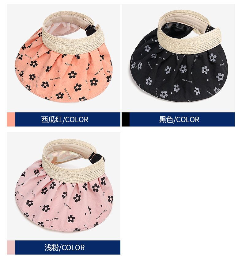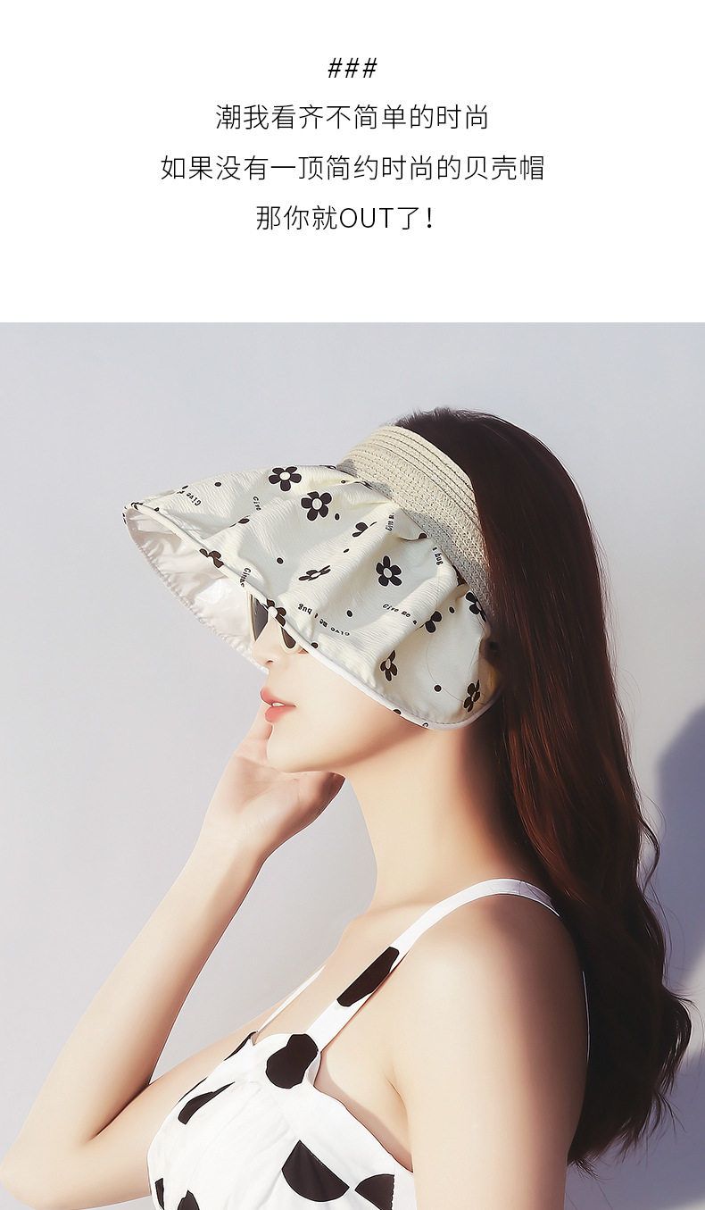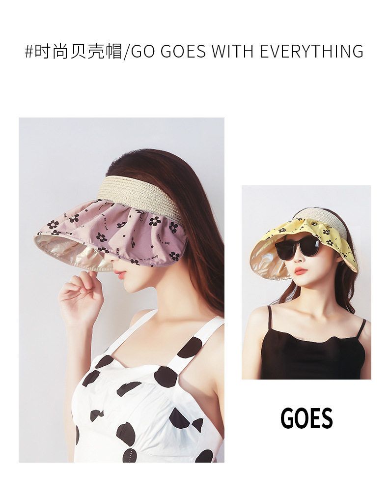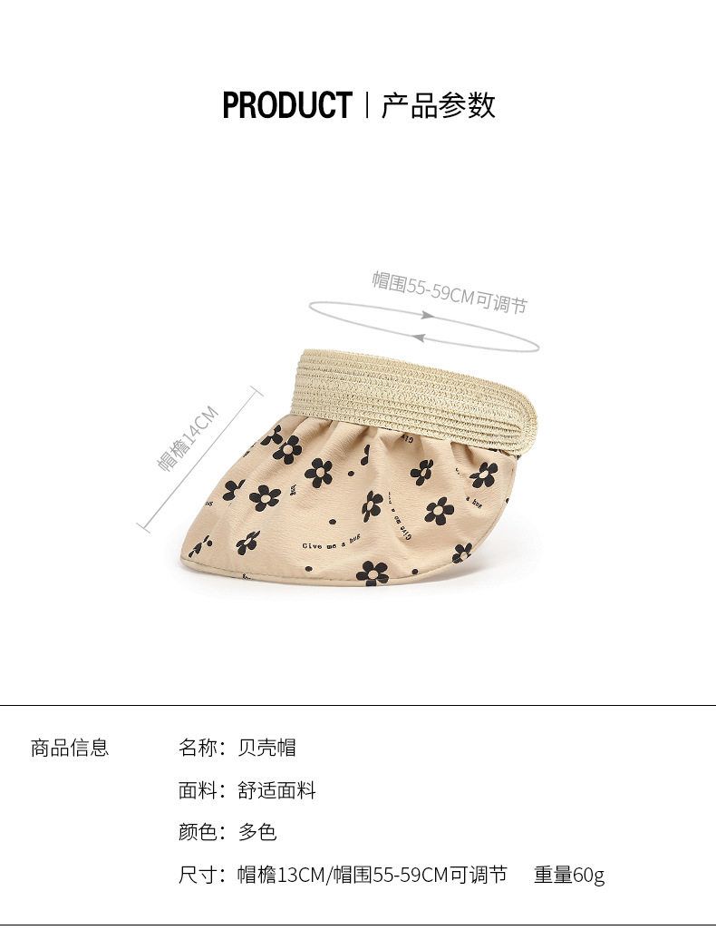 商品名称:夏季碎花银胶防晒遮阳贝壳空顶帽 1顶