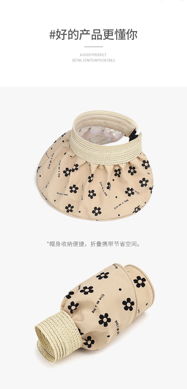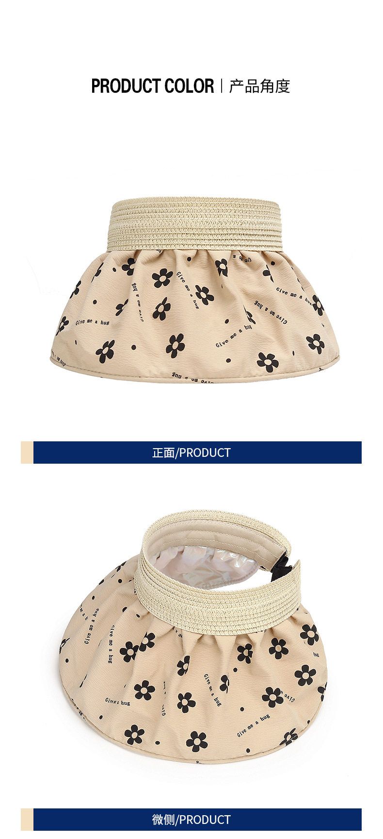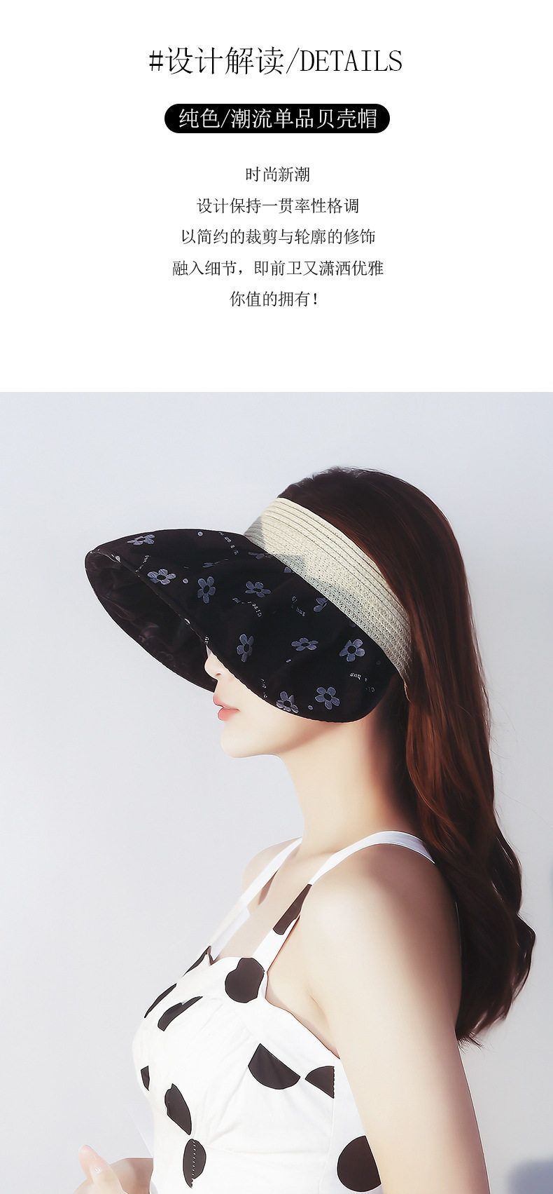商品名称:夏季碎花银胶防晒遮阳贝壳空顶帽 1顶