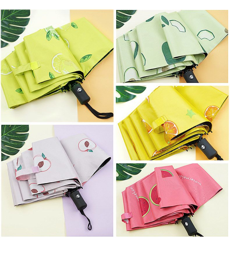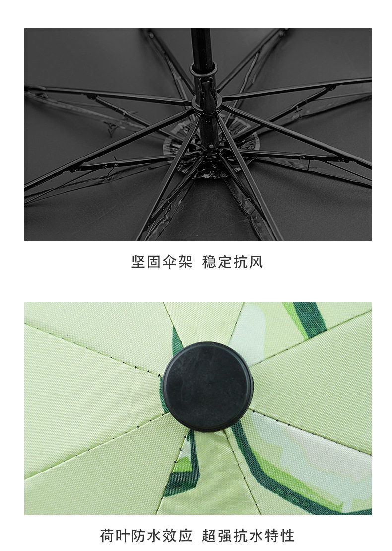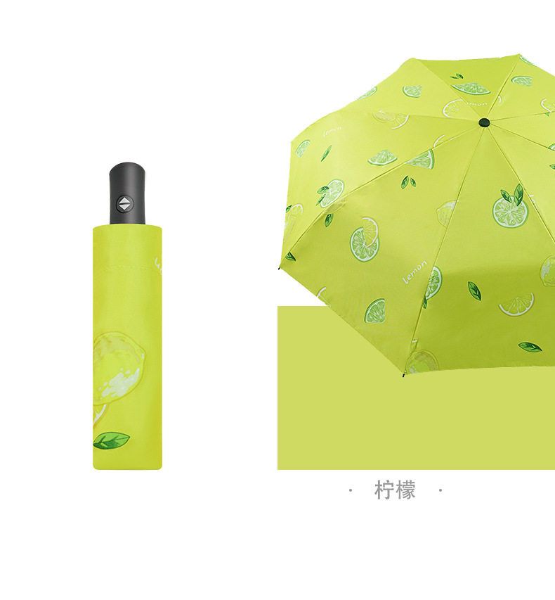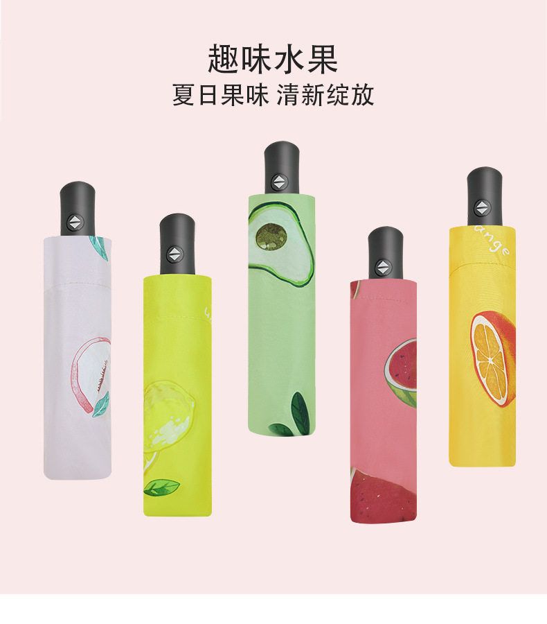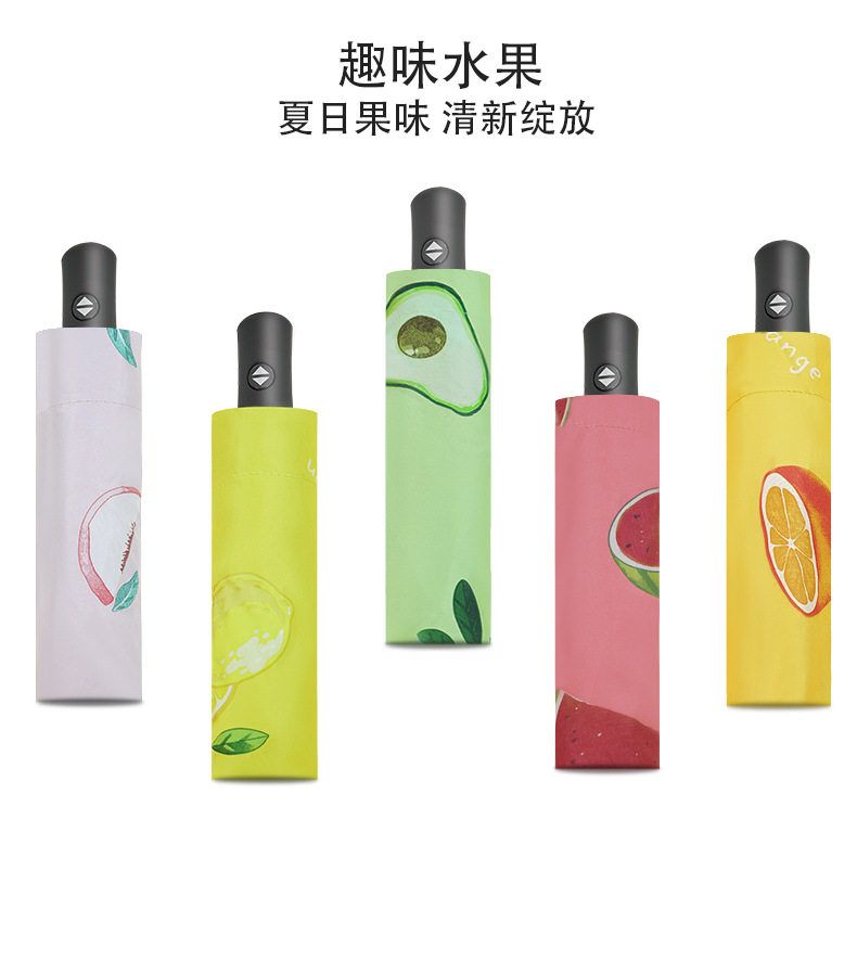 自动款8骨果趣黑胶防晒晴雨两用伞