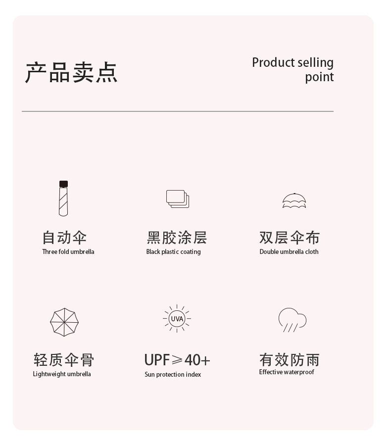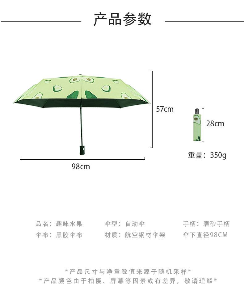 商品名称:自动款8骨果趣黑胶防晒晴雨两用伞