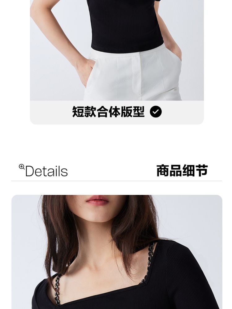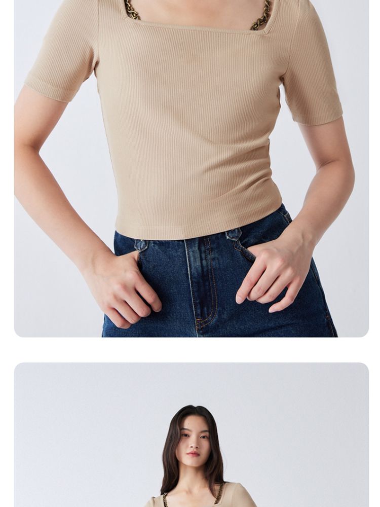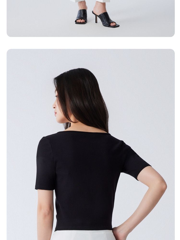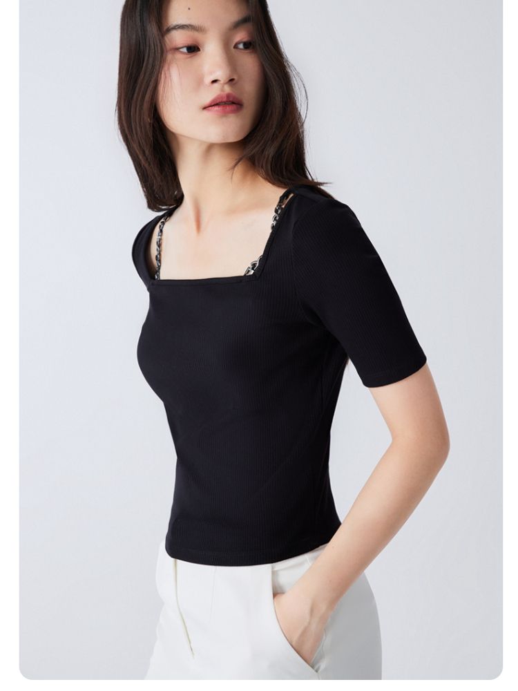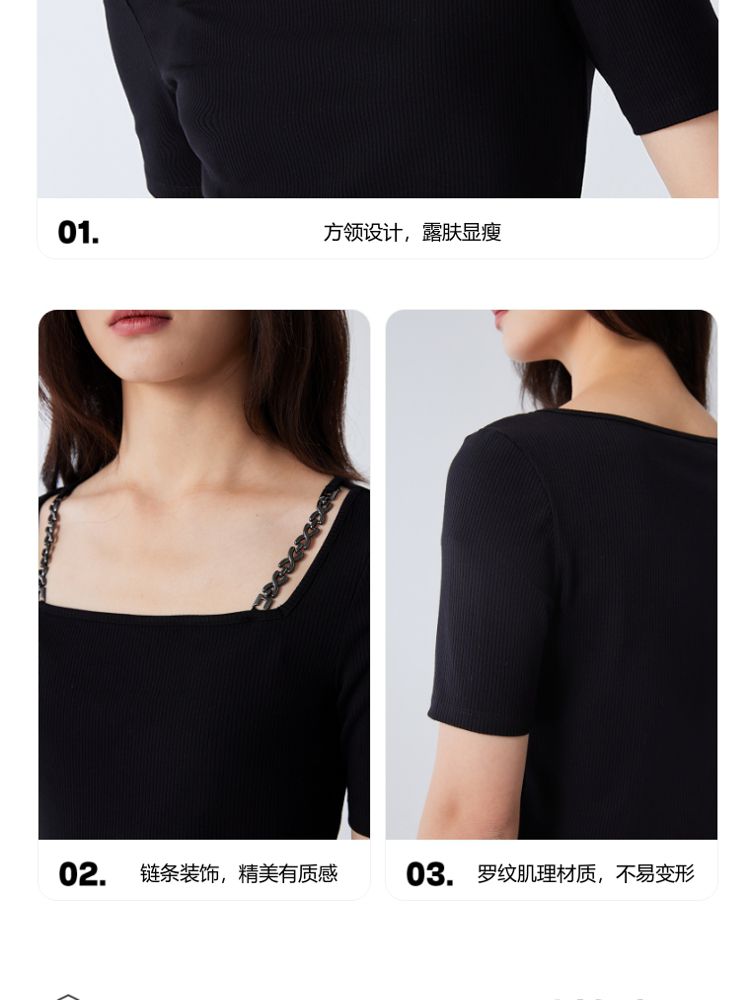 商品名称:T恤女百搭时尚纯色方领七分袖打底衫上衣女 683729