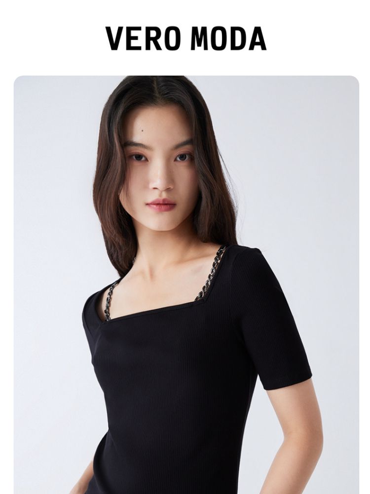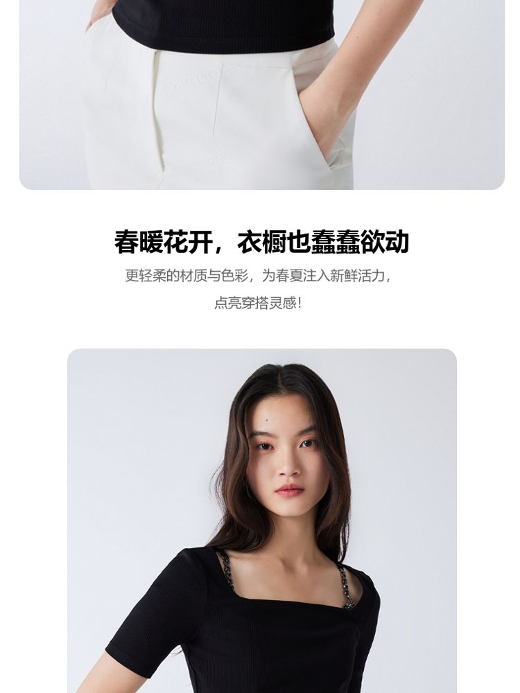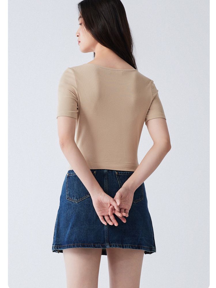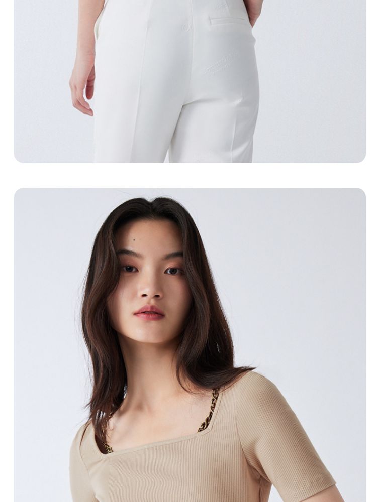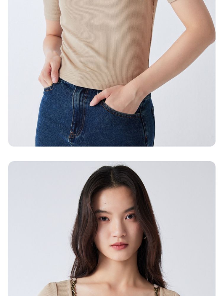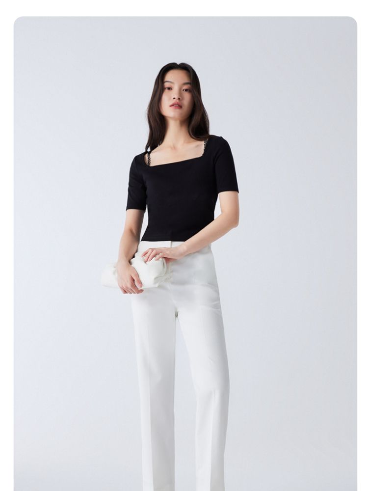 商品名称:T恤女百搭时尚纯色方领七分袖打底衫上衣女 683729