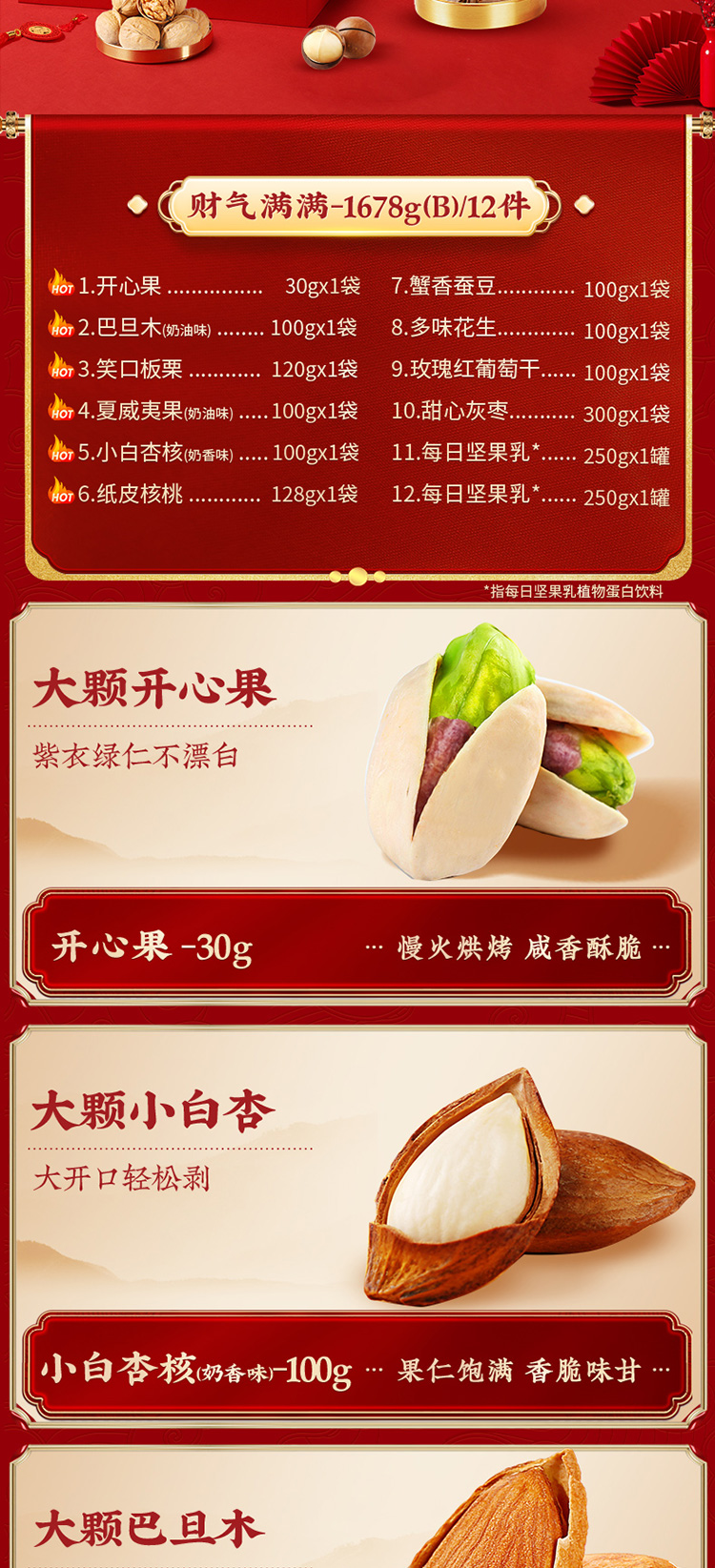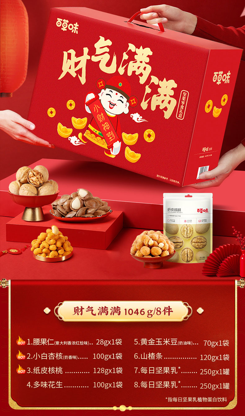商品名称:百草味财气满满坚果零食果乳礼盒