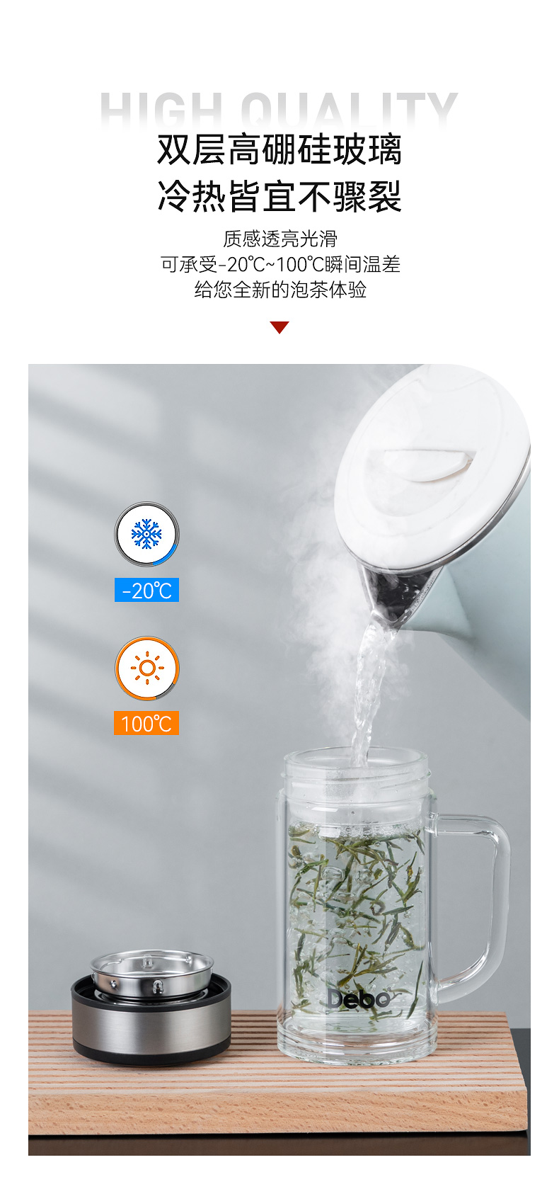 商品名称:Debo/德铂360毫升帕斯卡玻璃办公杯DEP-744