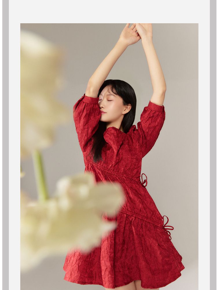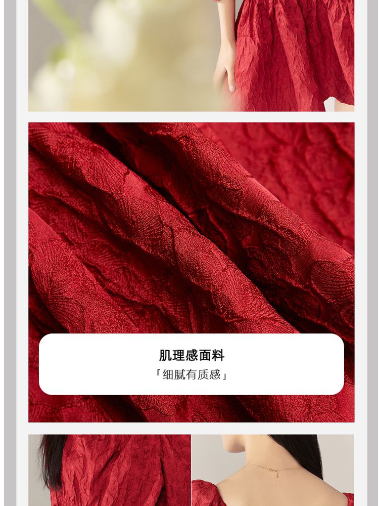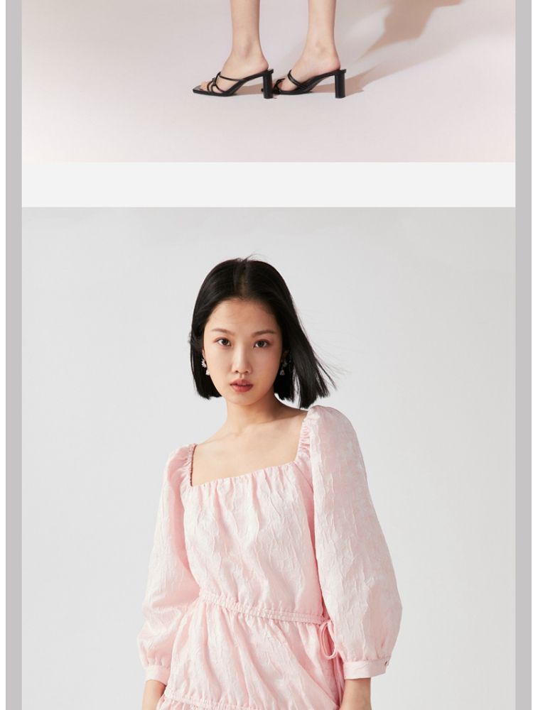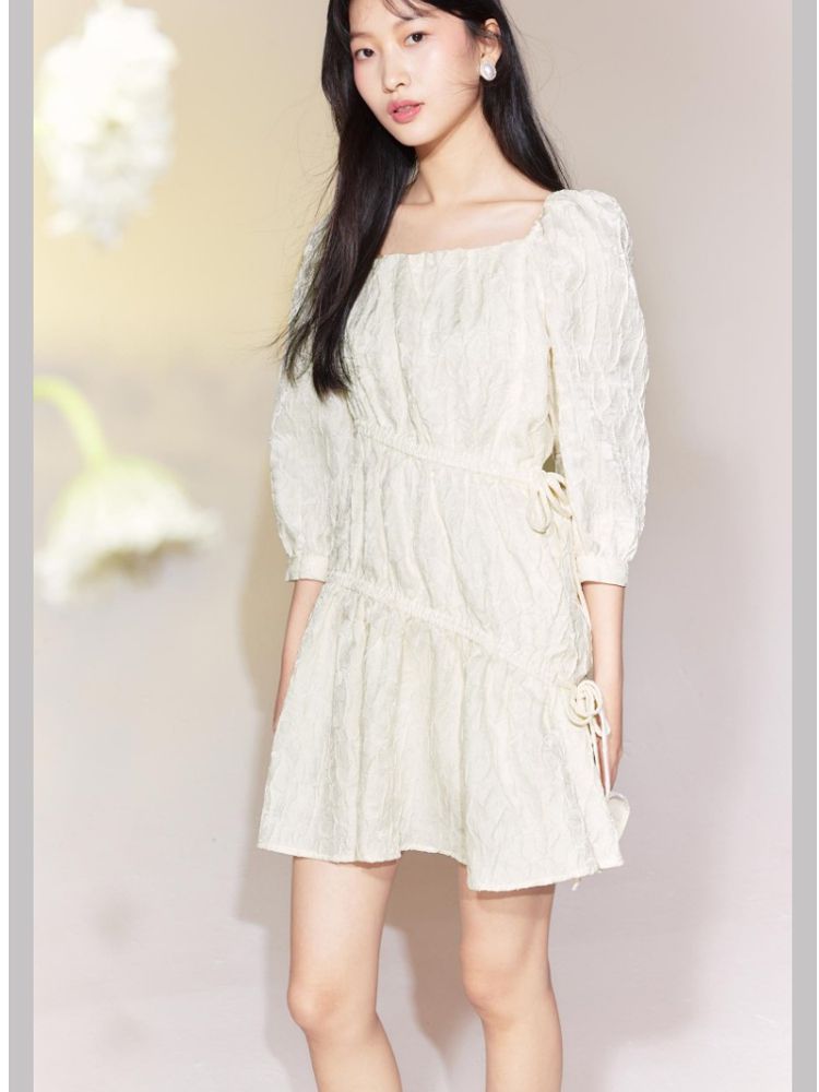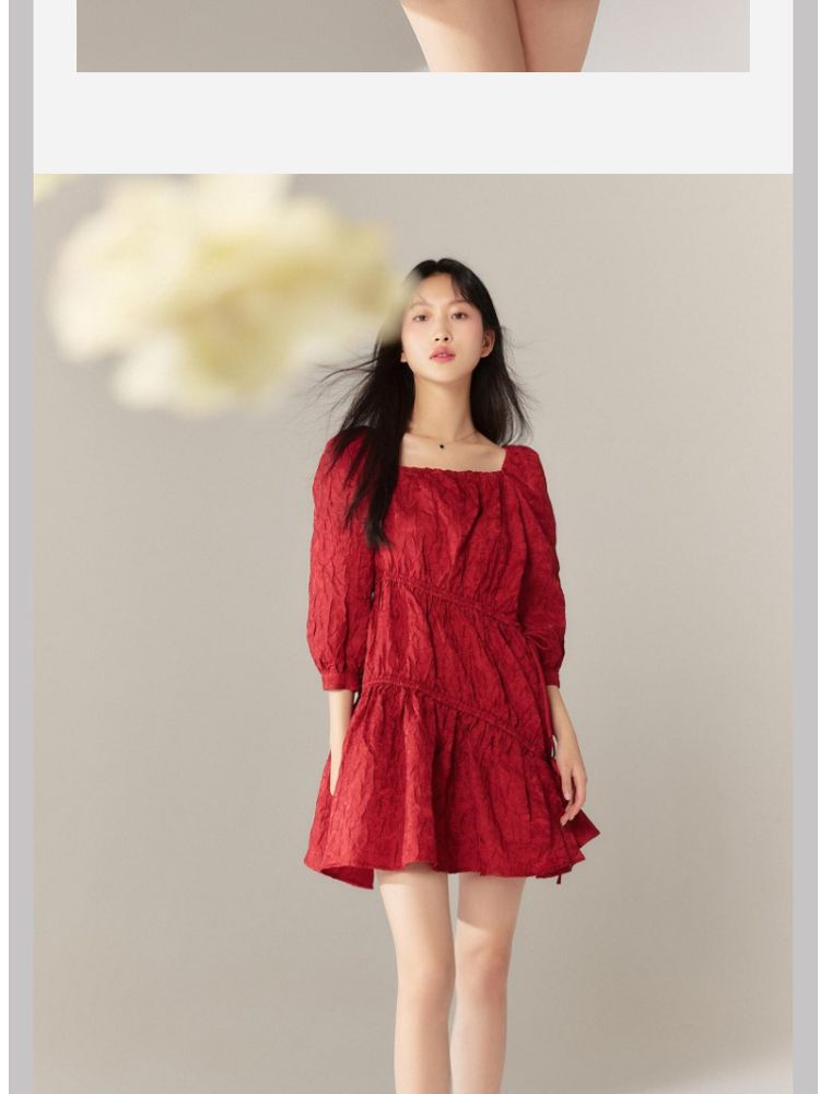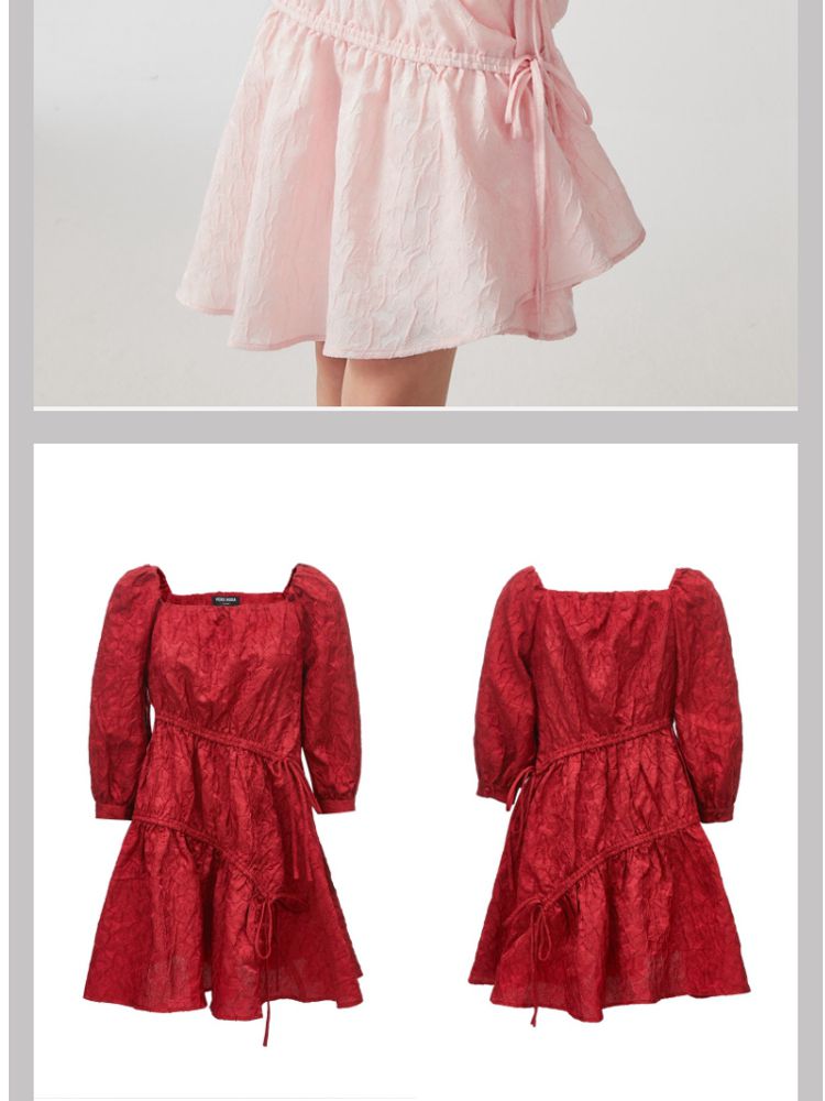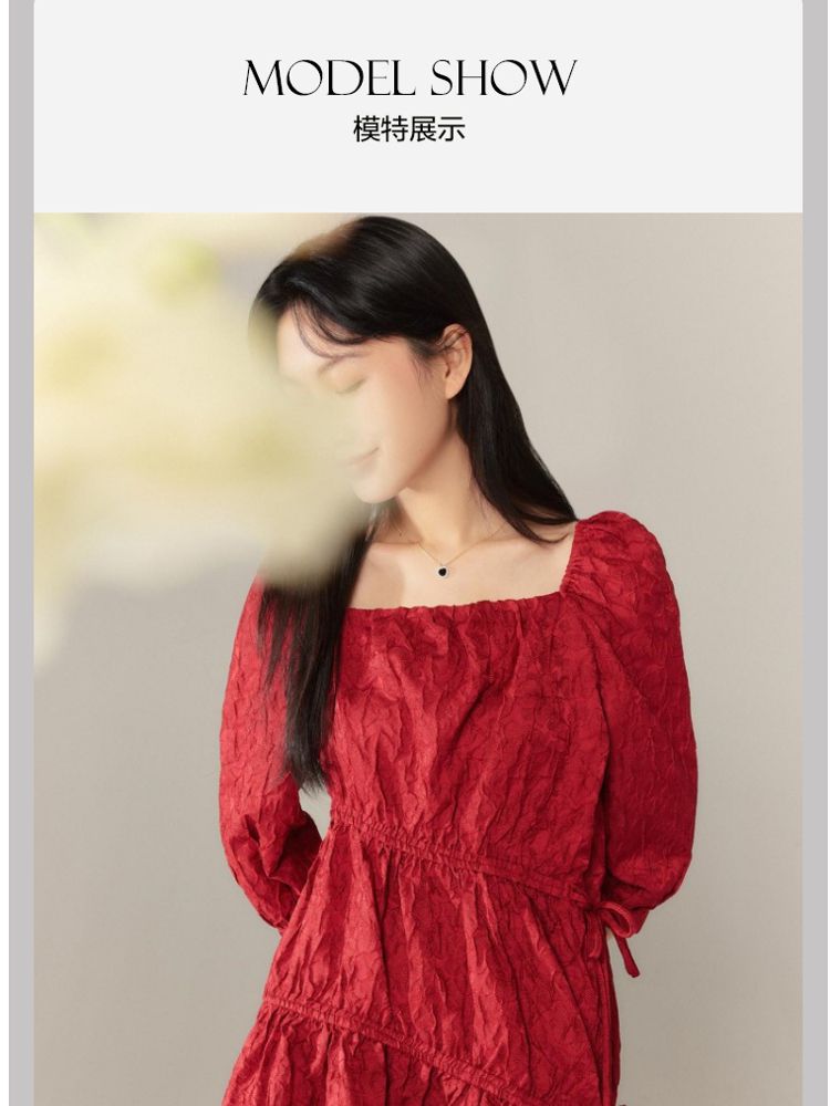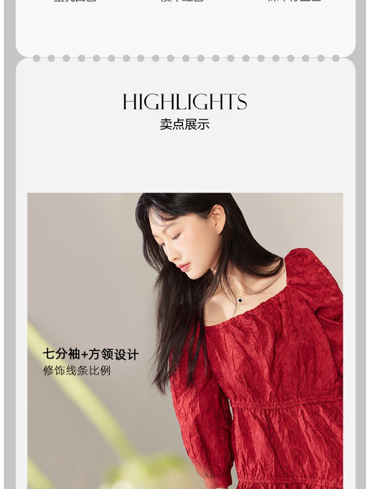 【肌理感抽绳设计】主推款质感方领显瘦春秋专柜同款连衣裙 159377