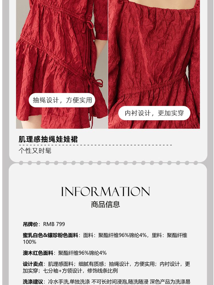 商品名称:【肌理感抽绳设计】主推款质感方领显瘦春秋专柜同款连衣裙 159377