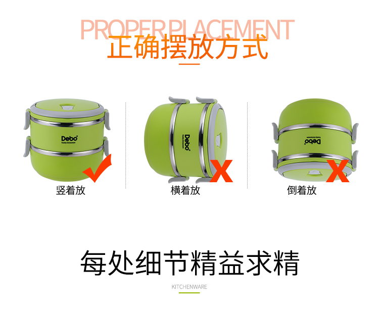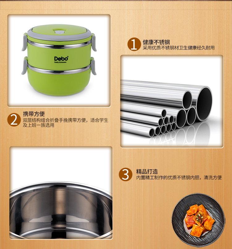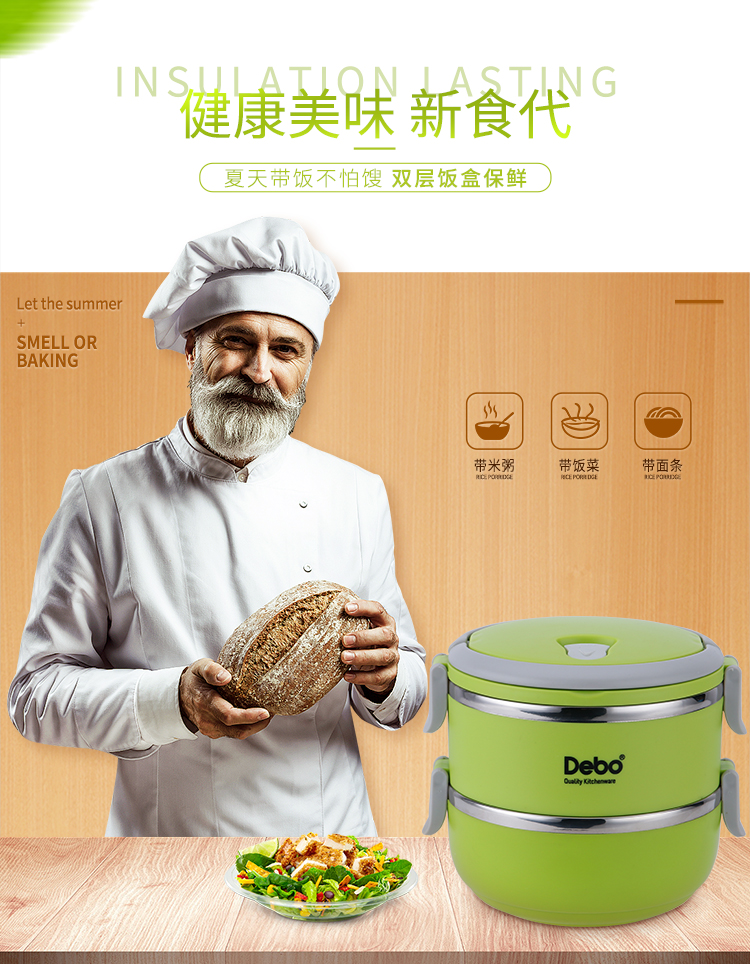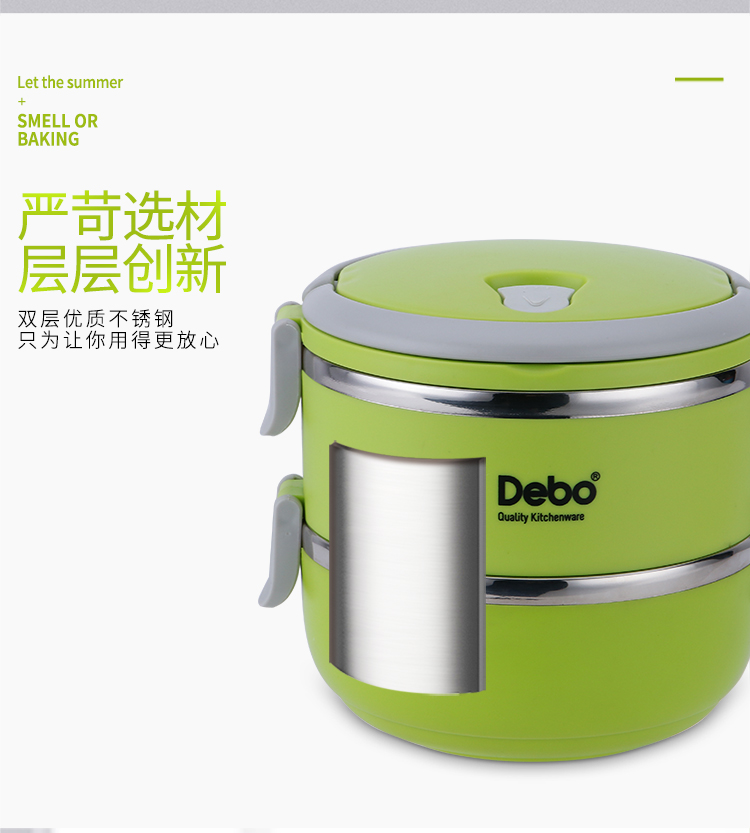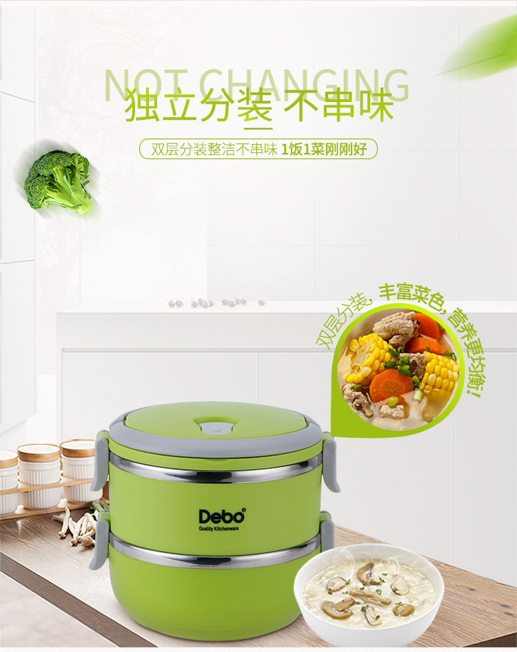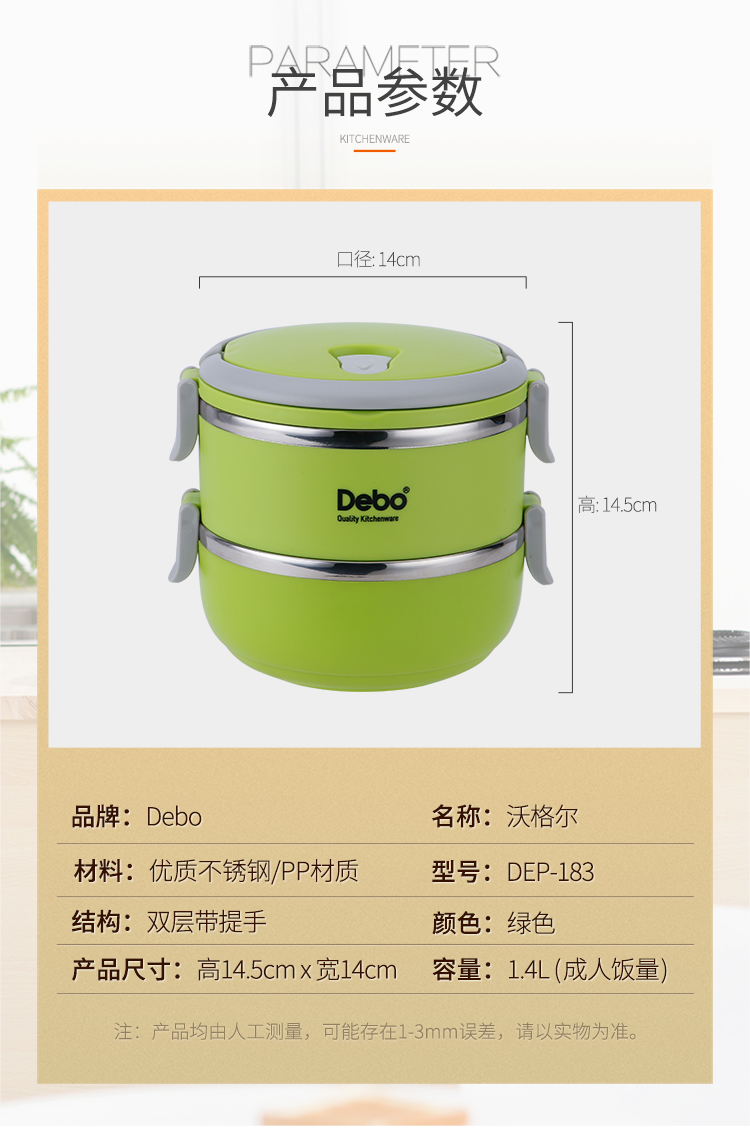 商品名称:Debo/德铂1.4升沃格尔2层保温饭盒-绿色DEP-183