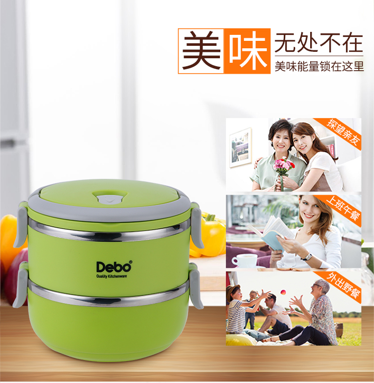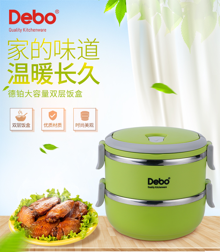 Debo/德铂1.4升沃格尔2层保温饭盒-绿色DEP-183
