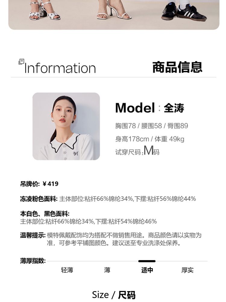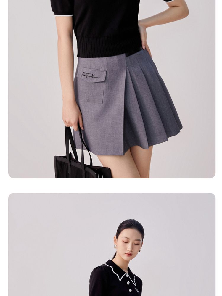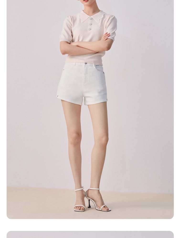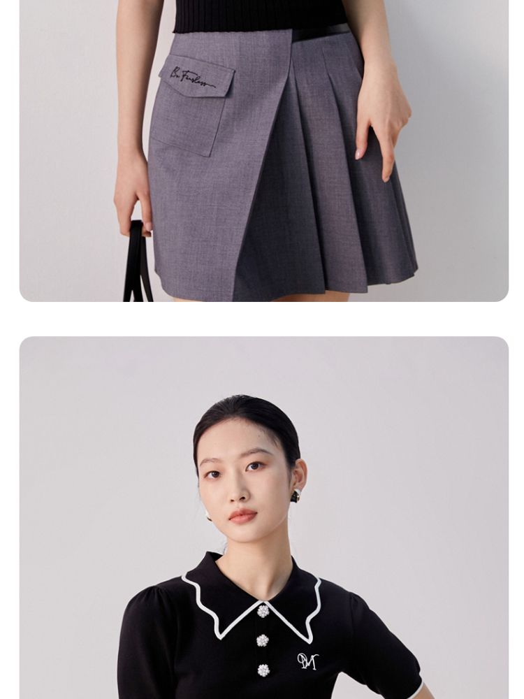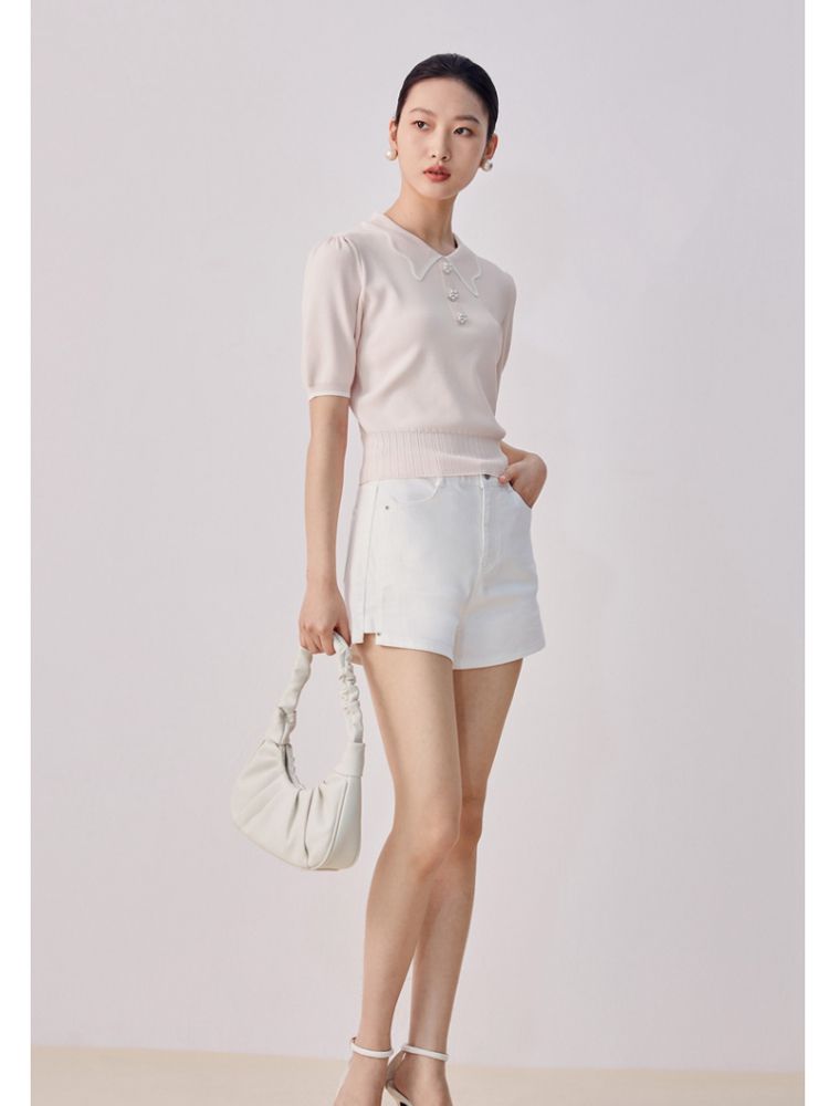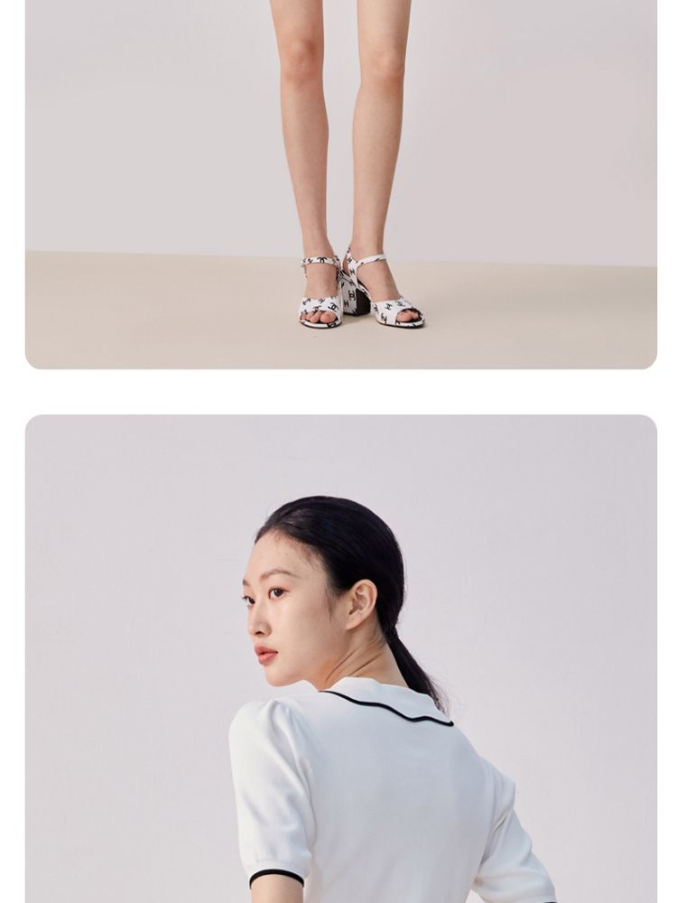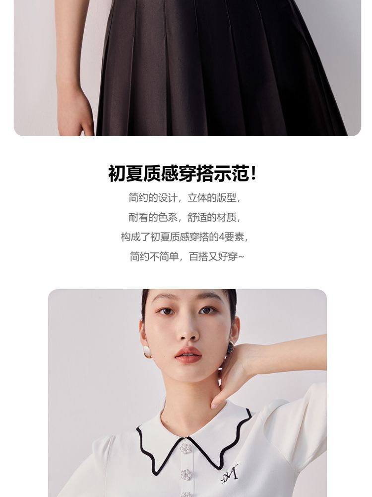 商品名称:【甜美通勤】翻领拼色泡泡袖刺绣短袖针织衫女 165329