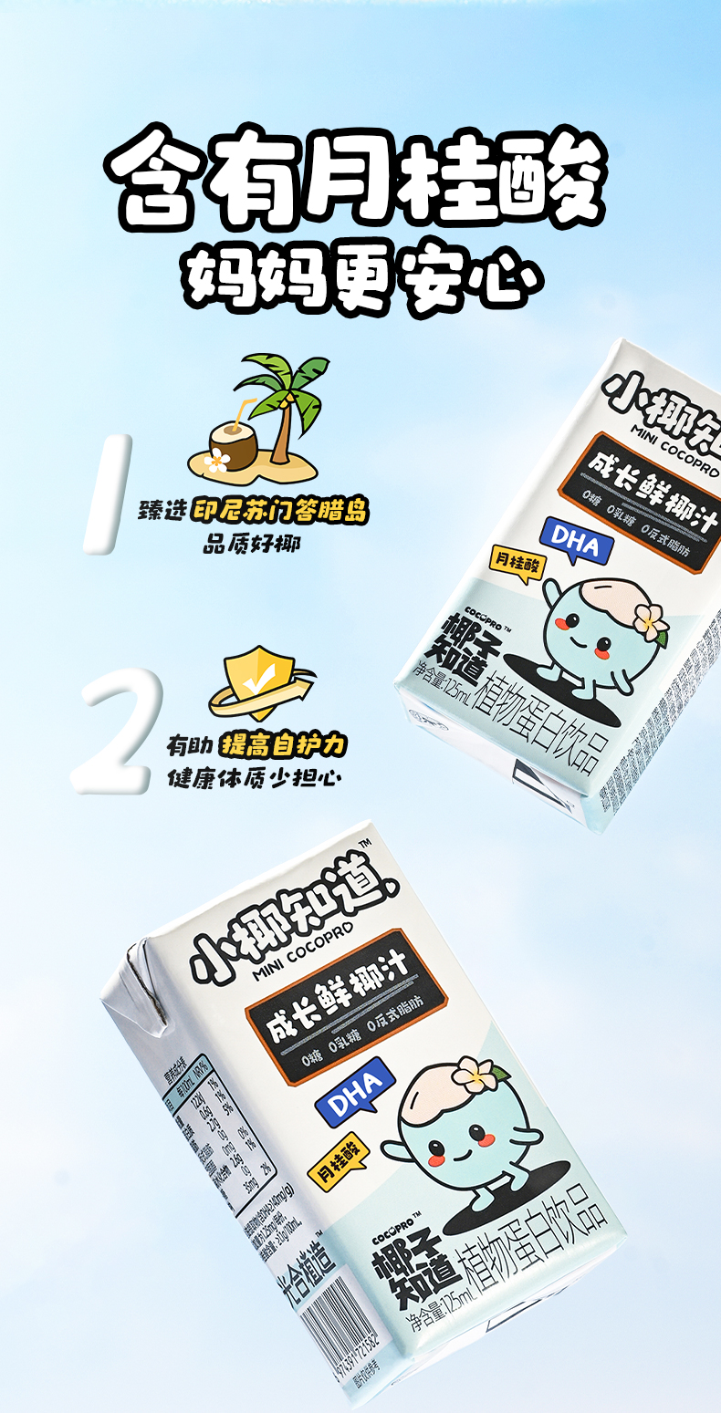 商品名称:椰子知道儿童成长鲜椰汁整箱125ml*12瓶