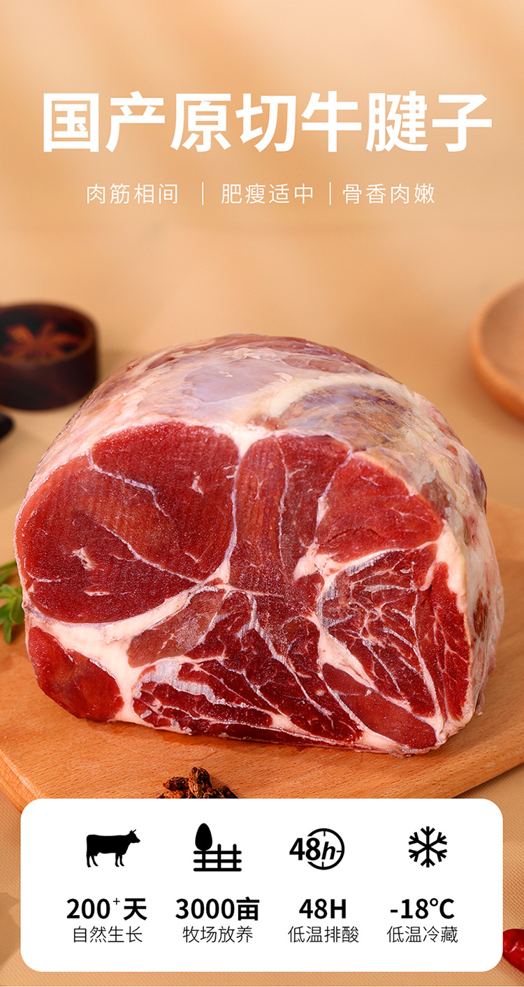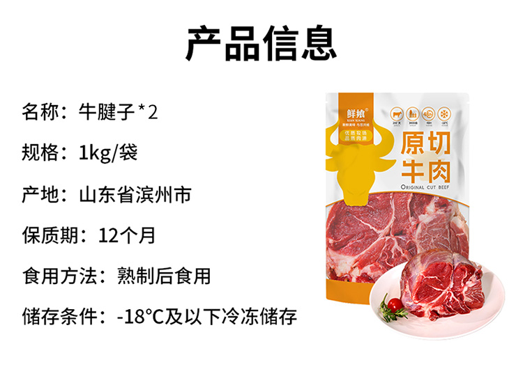 商品名称:【顺丰配送】鲜飨国产原切牛腱子1000g*2袋
