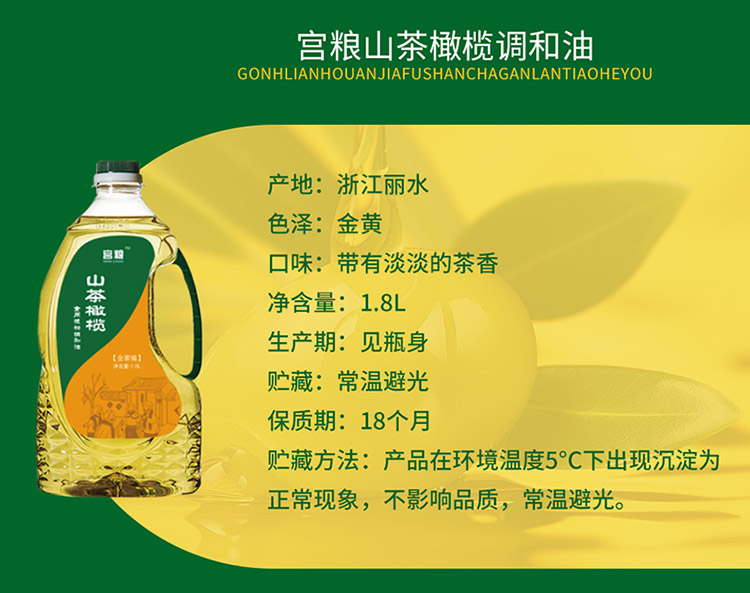 商品名称:宫粮山茶橄榄调和油1.8L
