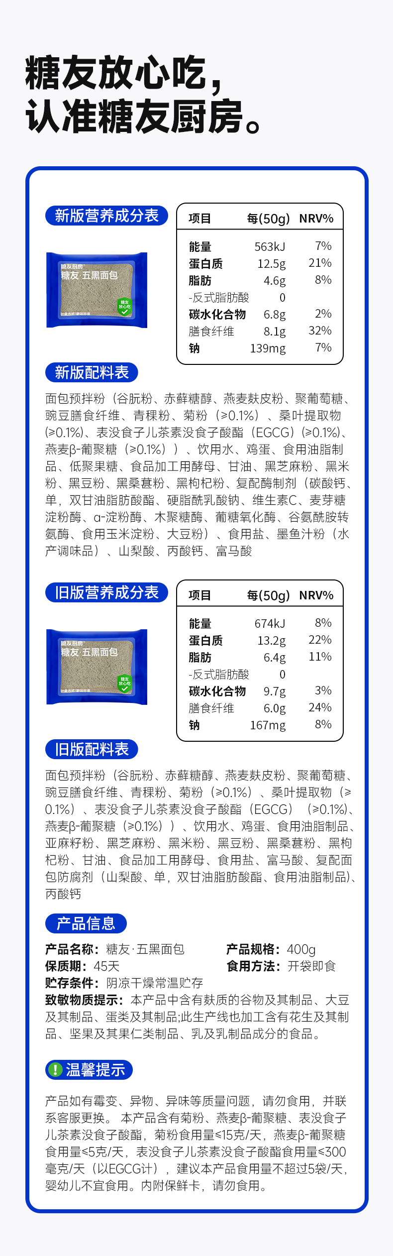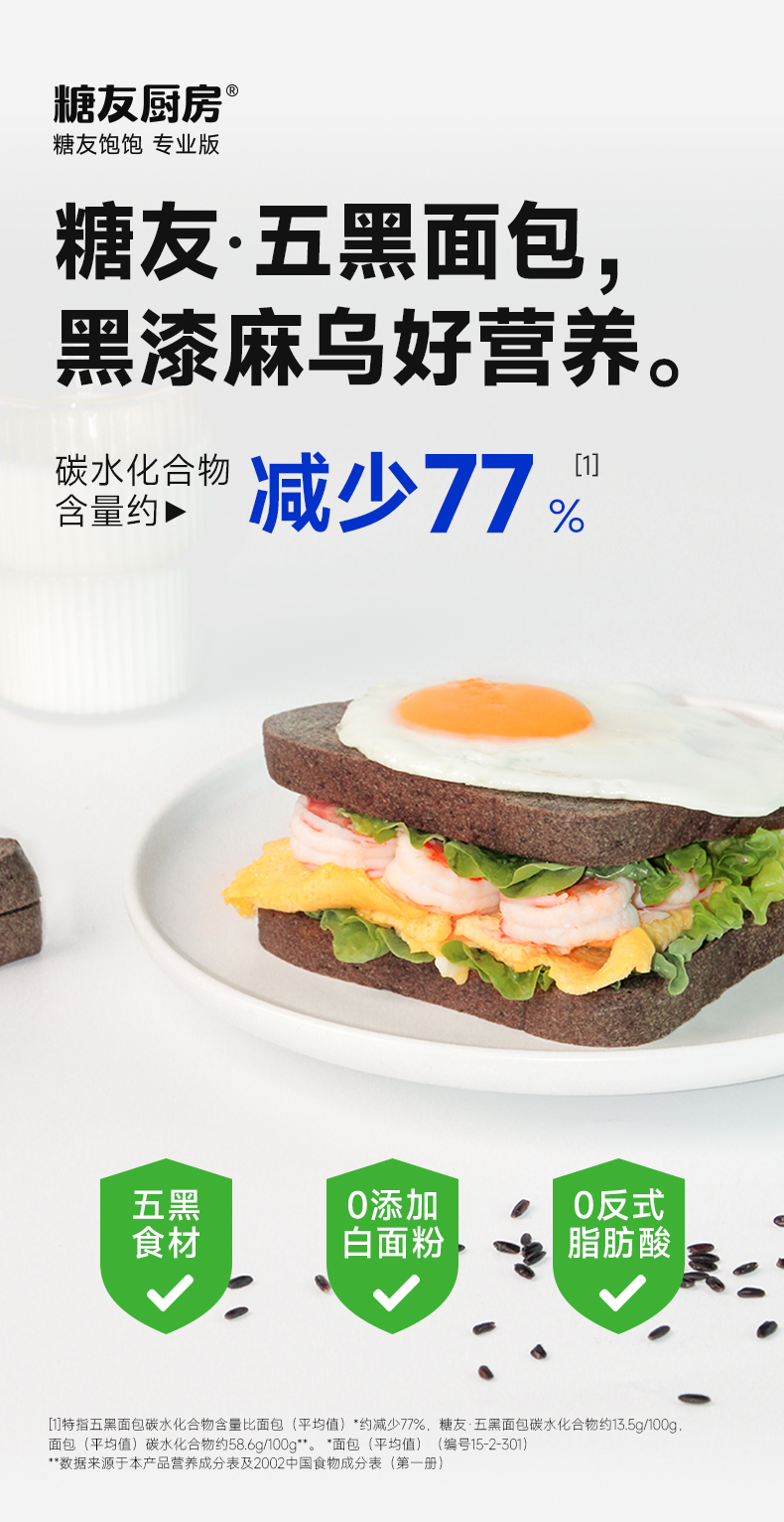 商品名称:糖友厨房糖友五黑面包整箱400g