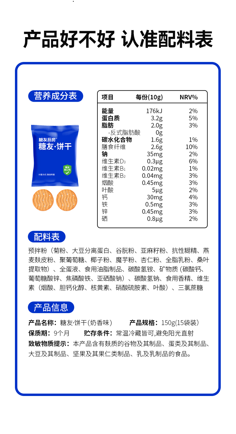 商品名称:糖友厨房糖友奶香味饼干整箱150g