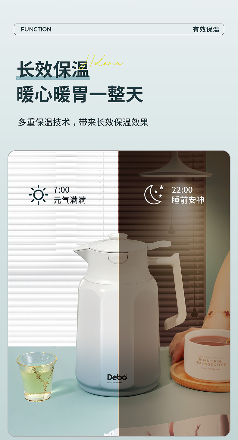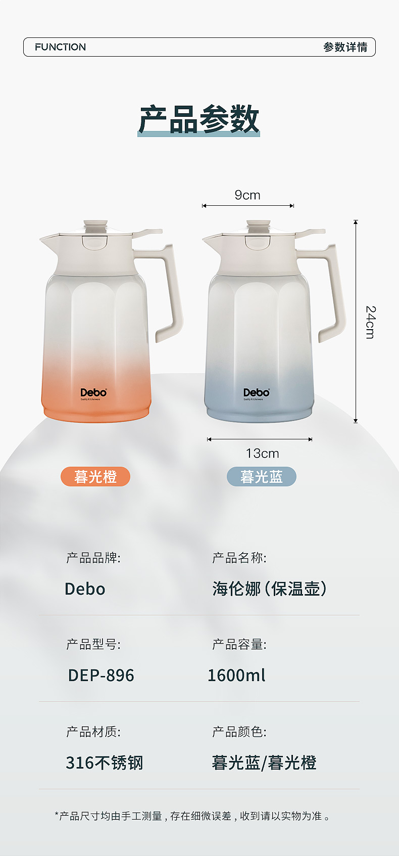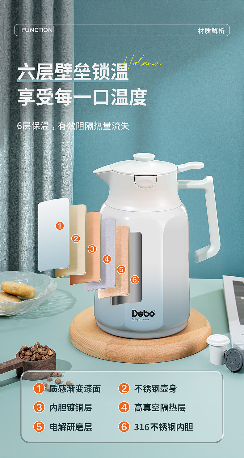 商品名称:Debo/德铂1600毫升海伦娜保温壶DEP-896