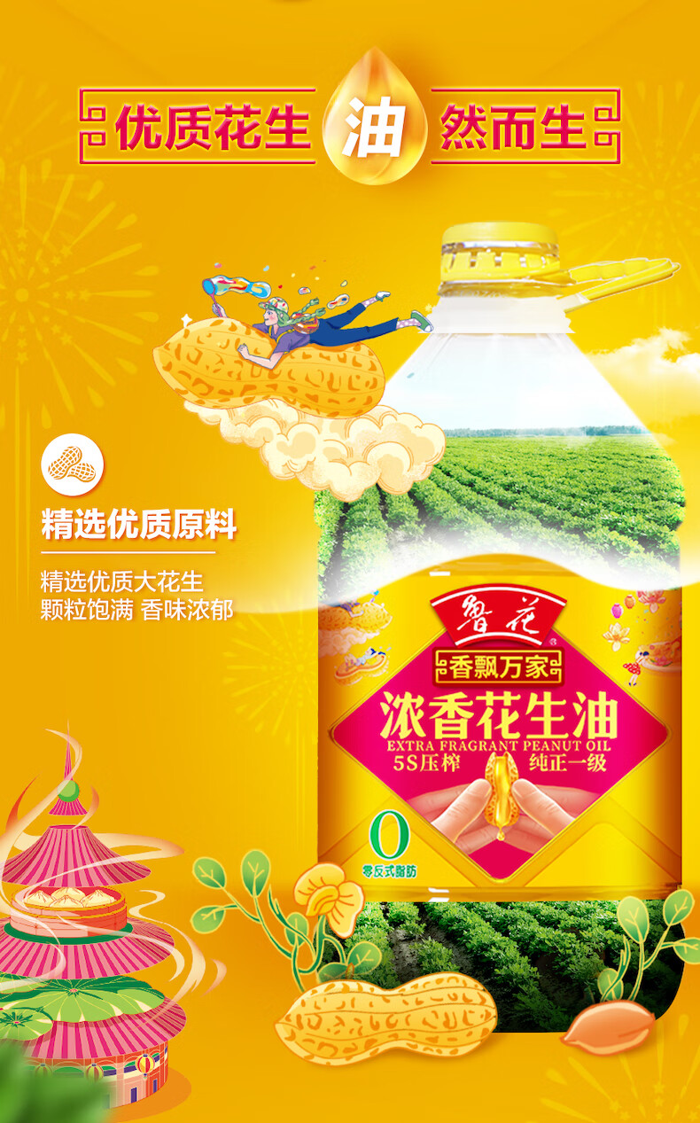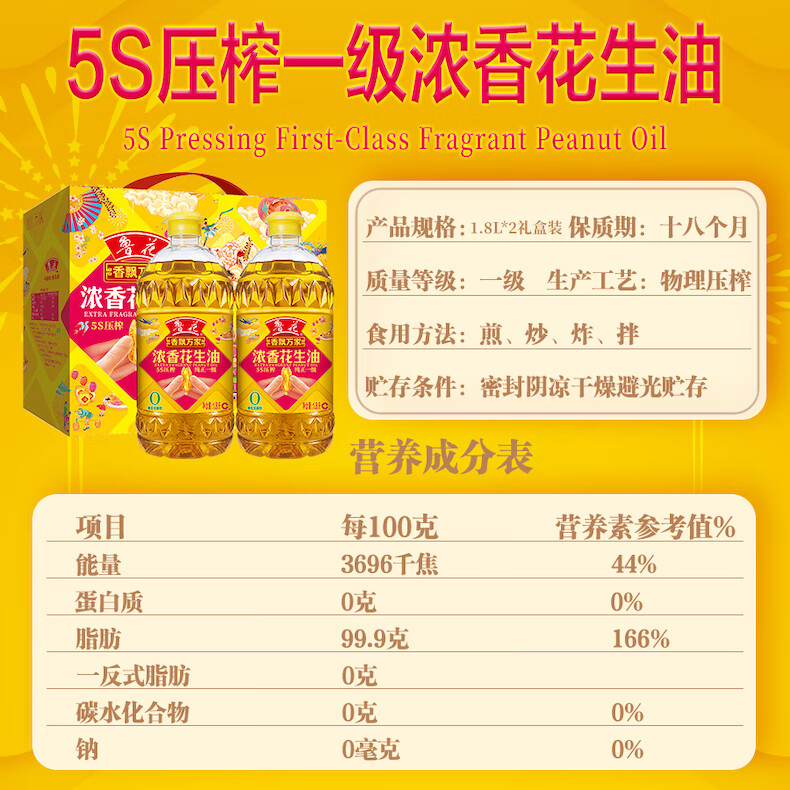 商品名称:鲁花香飘万家浓香花生油礼盒1.8L*2桶