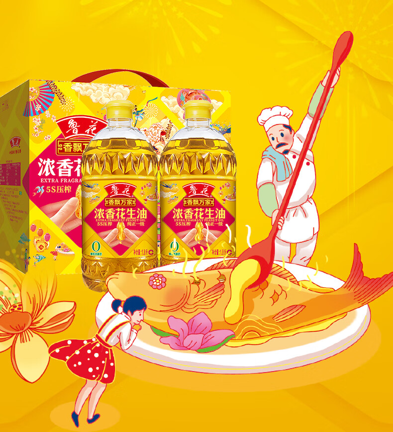 鲁花香飘万家浓香花生油礼盒1.8L*2桶
