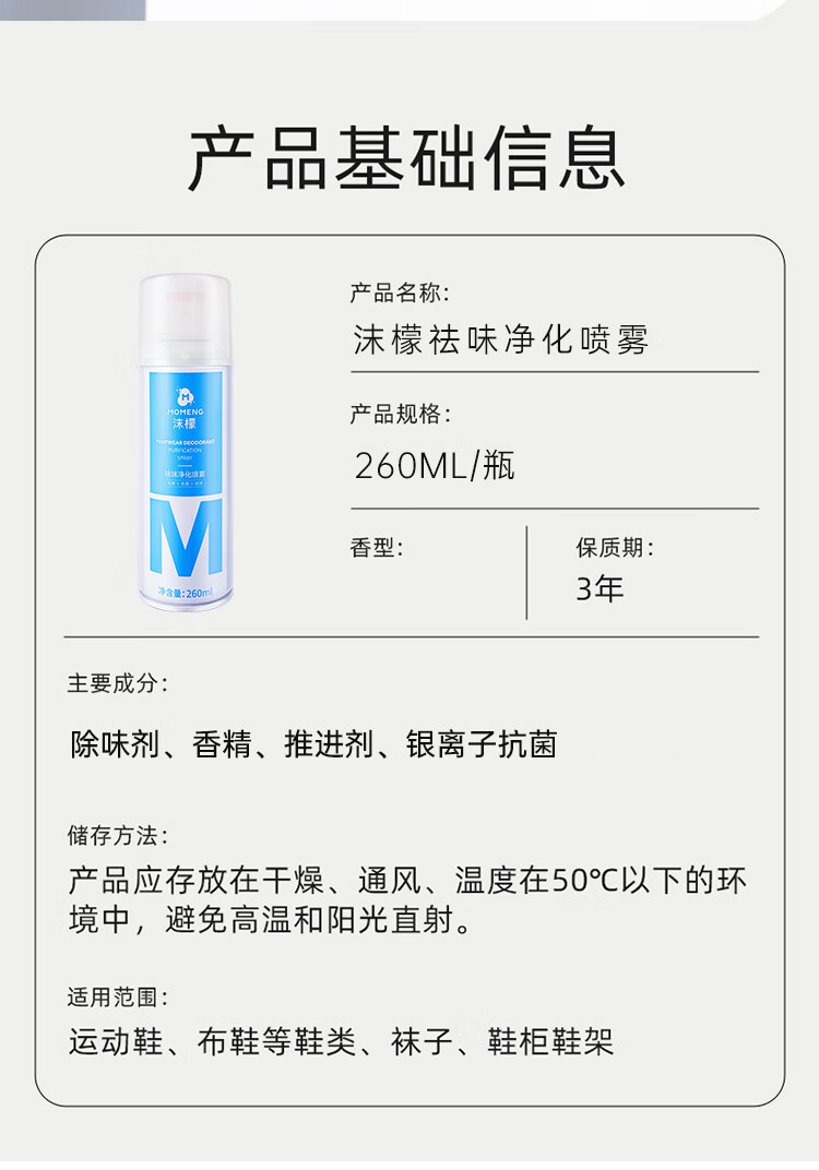 商品名称:沫檬鞋袜祛味净化喷雾260ml