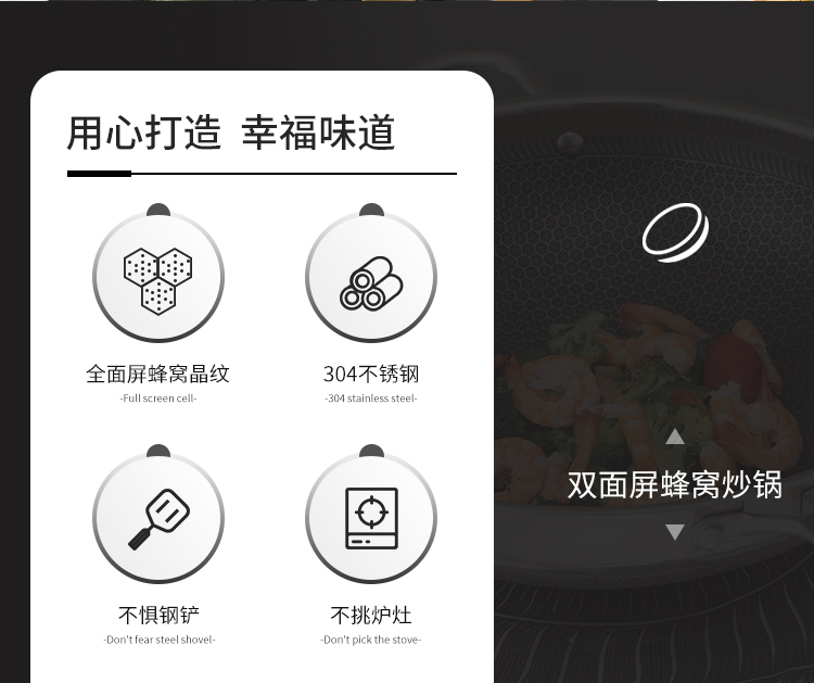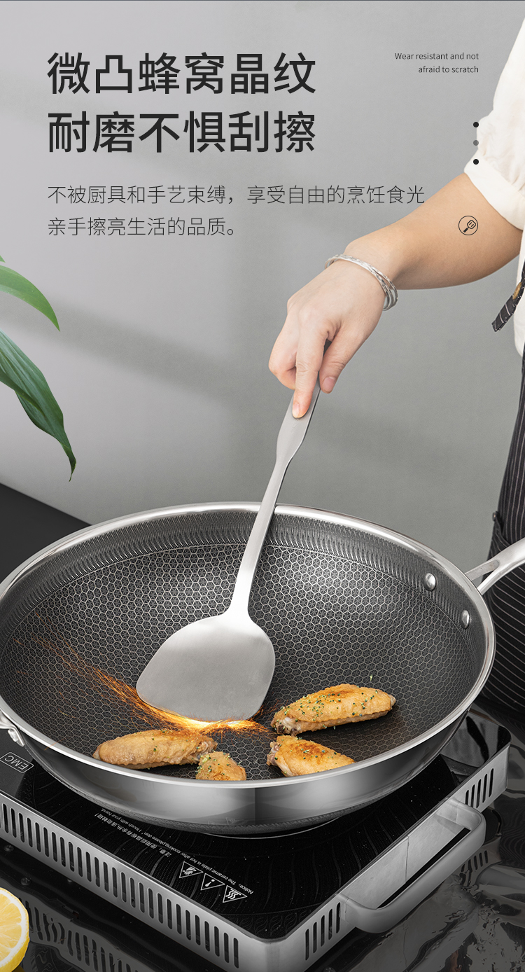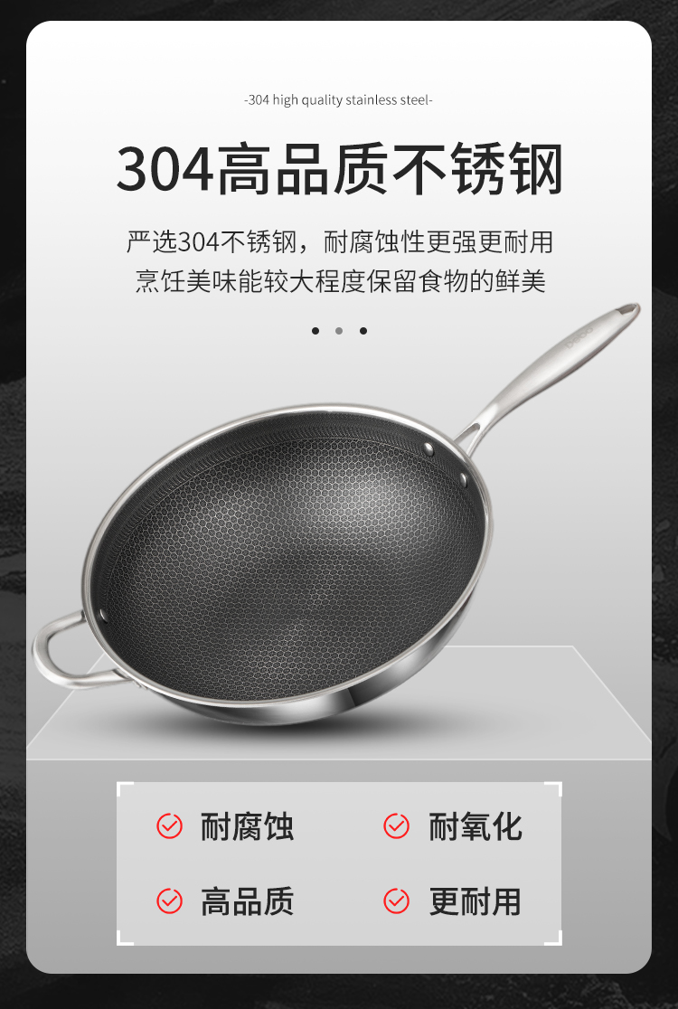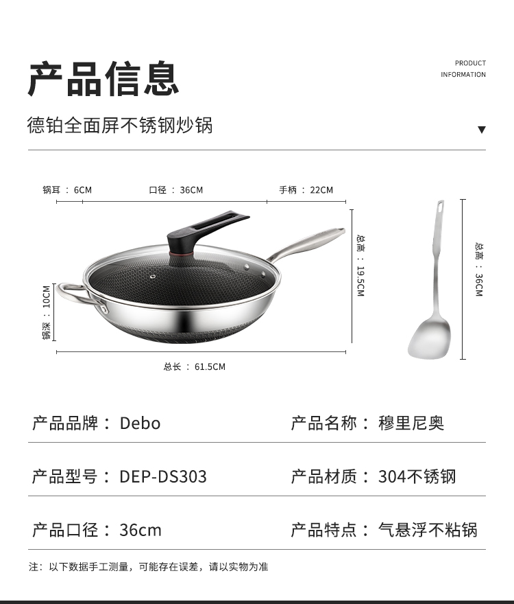 商品名称:Debo/德铂36cm穆里尼奥双面屏不锈钢炒锅DEP-DS303
